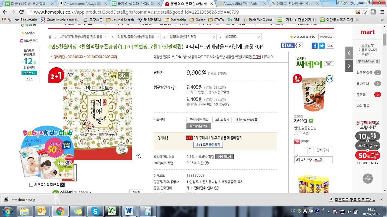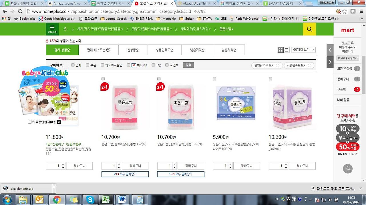 심심풀이 삼아 기사를 쓴 기자의 방식으로 비교 대상이 된 대부분이 나라에 판매되는 P&G의 Always (우리 나라에서는 위스퍼)의 비슷한/동일한 모델을 가지고 가격을 비교해보았다. 프로모션 팩으로 사면 물가와 환율 변동을 고려하지 않은 절대값은 얼추 비슷하다. 우리 나라가 더 싸다는게 아니라, 기사가 과장되었다는 점을 이야기해주고 싶은 것 뿐이다.