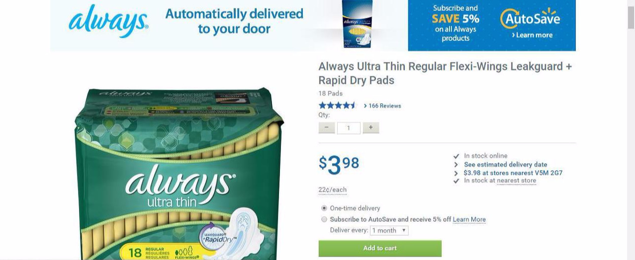 http://www.walmart.ca/en/ip/always-ultra-thin-regular-flexi-wings-leakguard-rapid-dry-pads/6000016950374
