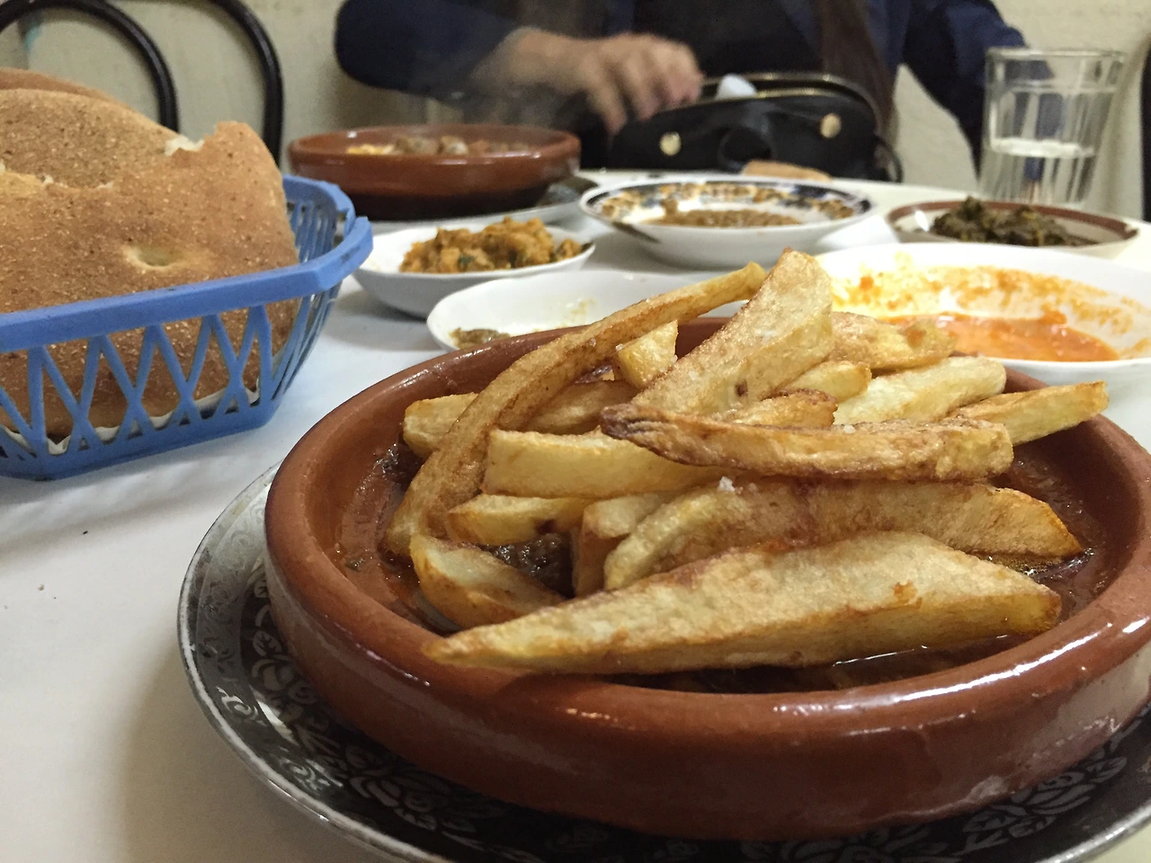머무는 3일동안 점심은 늘 시장 아저씨들이 맛있다고 추천해 준 Barrada Family Restaurant에 가서 먹었다. 우리나라 돈으로 오천원 정도의 가격에 푸짐한 타진(Tajine) 요리를 무한리필 빵과 함께 먹을 수 있는 곳이다. 들어오는 손님 모두 제일 먼저 부엌으로 안내를 받는데, 부엌 안에서 오늘 준비한 모든 종류의 타진들을 직접 맛 본 후 무엇을 먹을 것인지 고르도록 해 준다. 타진은 모로코의 전통 음식으로, 각종 야채와 고기류들을 텐트처럼 생긴 타진 그릇안에 넣고 푹 쪄낸 음식이다. 우리 나라의 갈비찜과 비슷한 식감을 생각하면 되겠다.