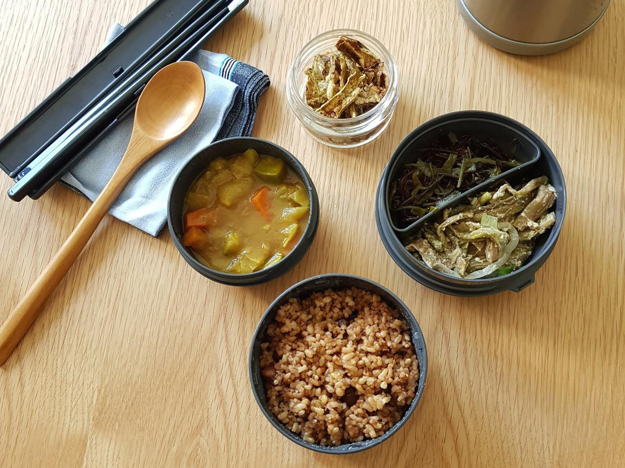 이날의 도시락 메뉴는 채식 카레, 나물 2종, 김부각
