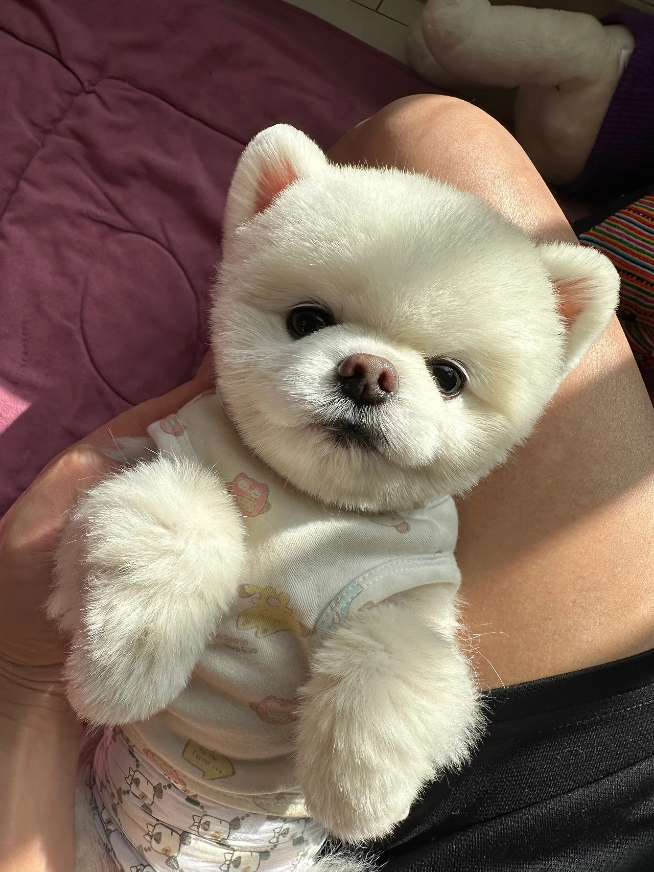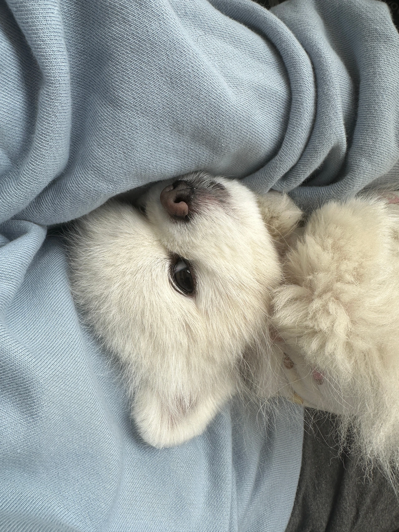 옷에 한올이라도 반려동물의 털이 붙어있으면 우리끼리 한 번씩 하는 농담이다. 친구들도 나에게 "두부가 함께 왔네."라고 농담을 하기도 한다.