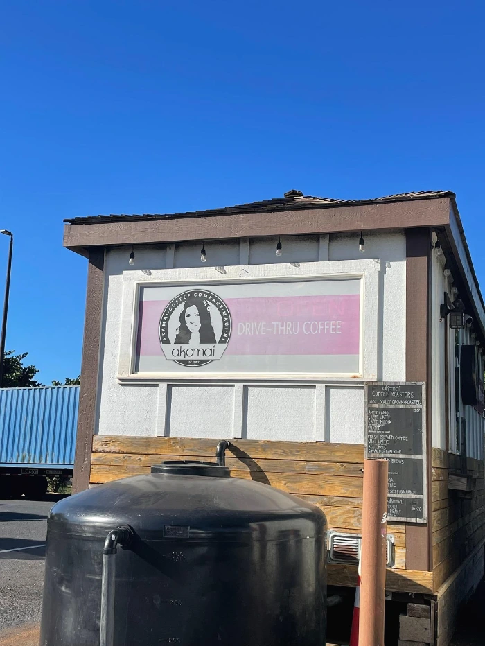 마우이에서 생산된 재료로만 음료를 제조한다는 akamai 드라이브스루 커피