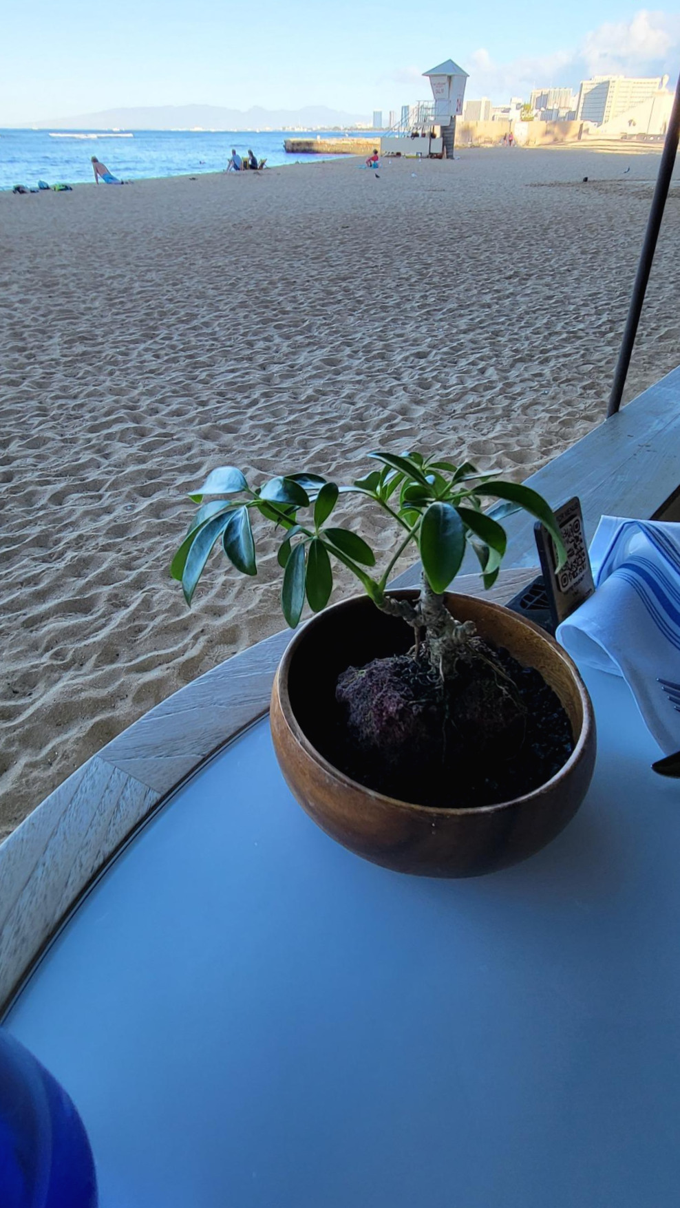 적당히 배가 고파졌을 때쯤 미리 예약해둔 레스토랑 'Hau tree'로 향했다. 이 레스토랑은 해변 리조트 1층에 자리 잡은 식당인데, 투숙객이 아니라도 예약을 통해 식사를 할 수 있다. 처음에는 뭐 얼마나 대단한 레스토랑이겠어~ 했지만 카페에 들어서는 순간 입이 떡 벌어졌다. 모던하고 따뜻한 색감의 인테리어에 테이블과 테이블 사이에 엄청나게 큰 나무가 그늘을 드리우고 있었다. (이 사진을 왜 내가 안 찍었던가!) 나무가 얼마나 큰지 레스토랑의 2/3는 덮을 수 있을 것 같았다. 창가 테이블석 바로 옆은 해변의 모래사장이었고, 자리에 앉으면 보이는 시야는 모두 푸른 수평선 안이었다. 나무의 품에 안긴 것 마냥 포근하게 앉아 바다를 바라보며 아침 식사를 하는 내 모습이란, 1인칭으로도 3인칭으로도 뿌듯하고 감동적인 순간이다.