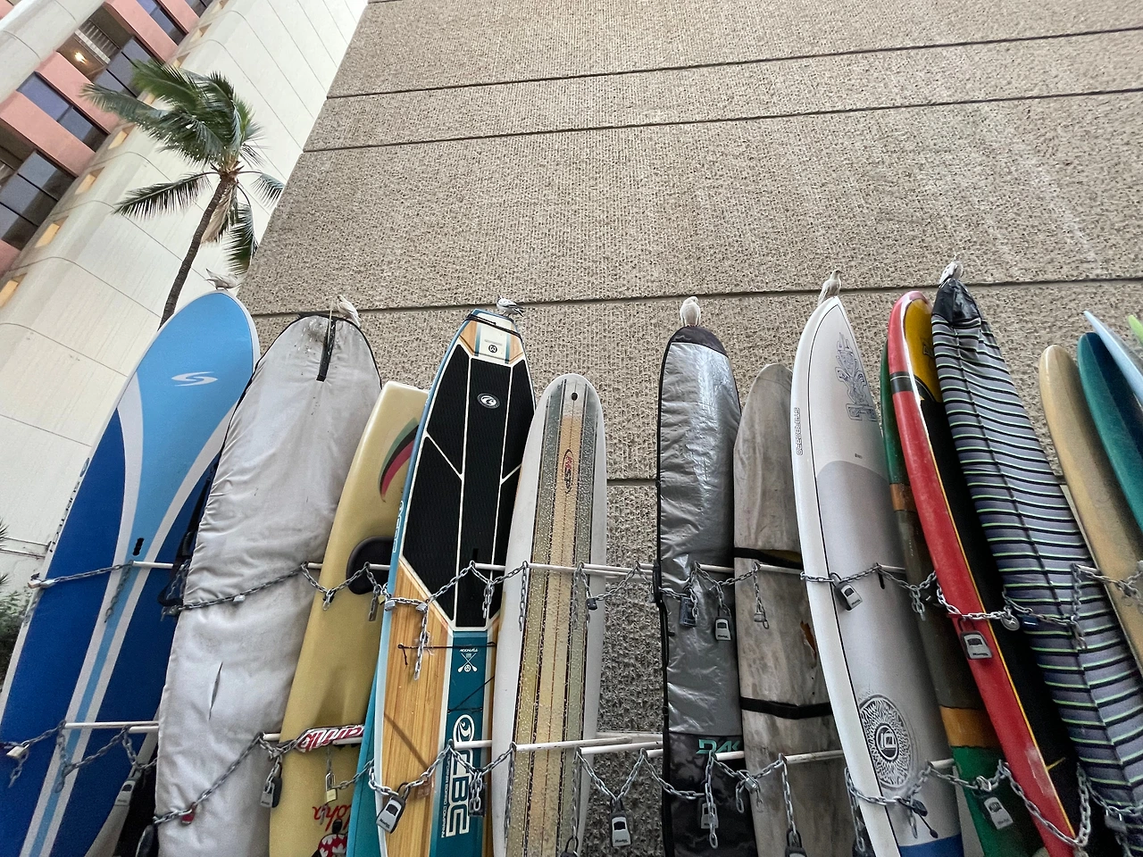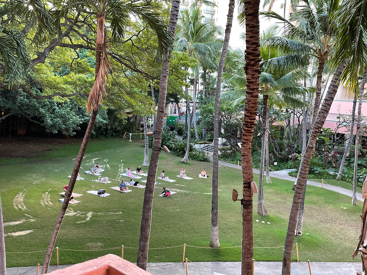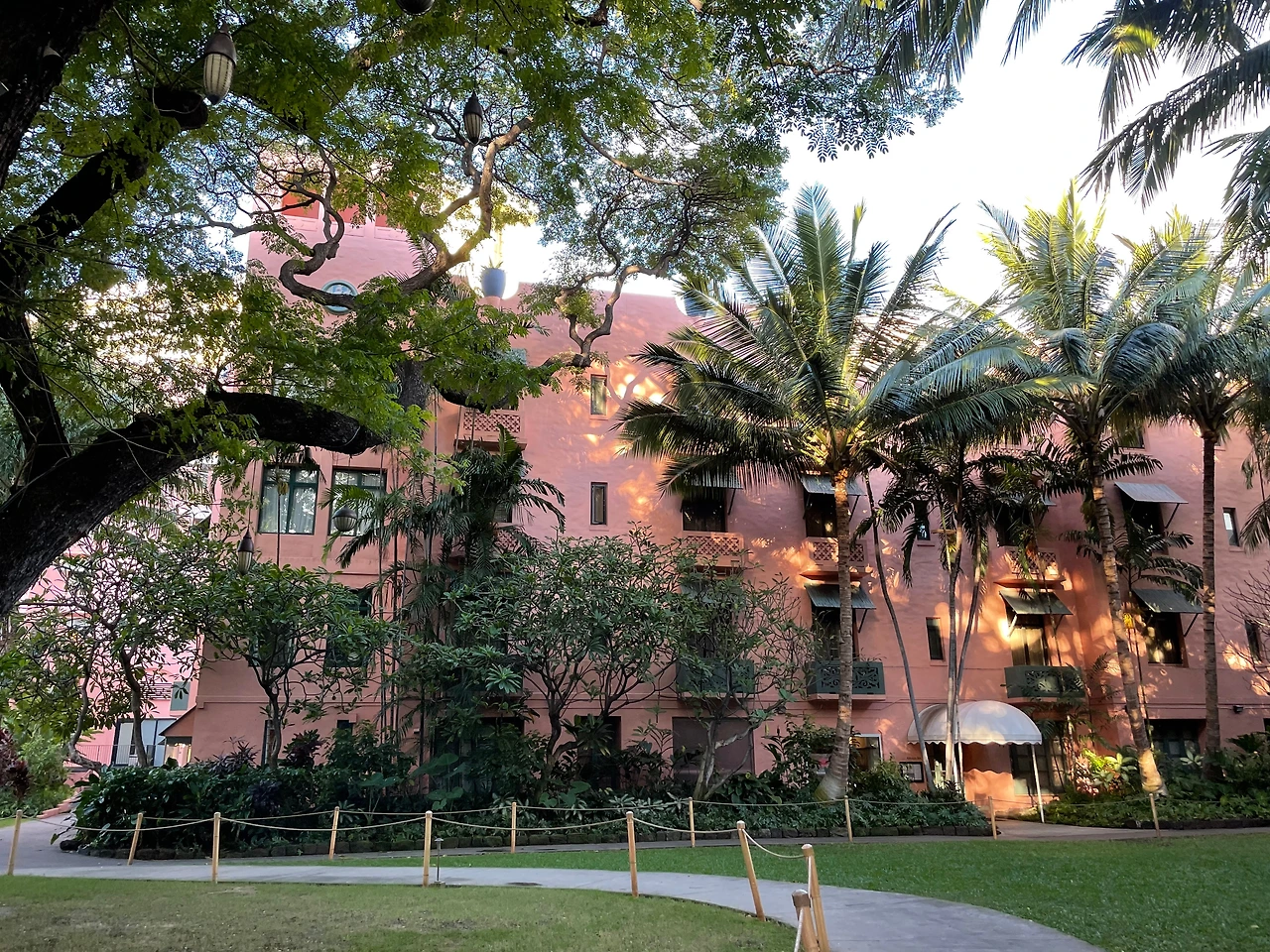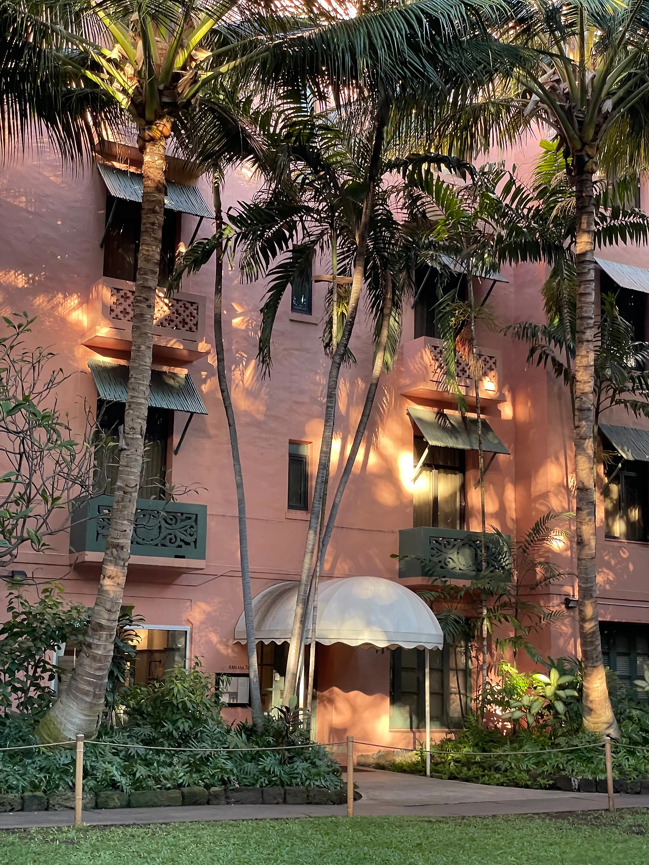 오아후에서는 겨우 3일만 숙박을 할 수 있었기 때문에 다른 섬에서 나름 절약한 비용으로 꽤 괜찮은 숙소들을 방문해 보고 싶었다. 그중 하나가 핑크 리조트로 유명한 1927년 오픈한 로열 하와이언 럭셔리 리조트다. 이름에 럭셔리가 들어가 있는 게 왠지 자기 자랑하는 것 같아 어색하지만 이름에 걸맞게 직원들이 입구에서부터 엄청 친절하고, 또 건물 자체가 고풍스럽고 멋있어서 룸 내부며 곳곳을 구경하는 재미가 있다. 좀 특별한 점은 요일별로 요가 수업. 레이(하와이식 꽃 목걸이) 만들기 수업 등 투숙객들을 위한 클래스를 운영한다는 것. 한국인들을 포함한 다국적의 여행객들이 묵는 인기 있는 숙소가 아닐까 하는 개인적인 평가를 내려본다.