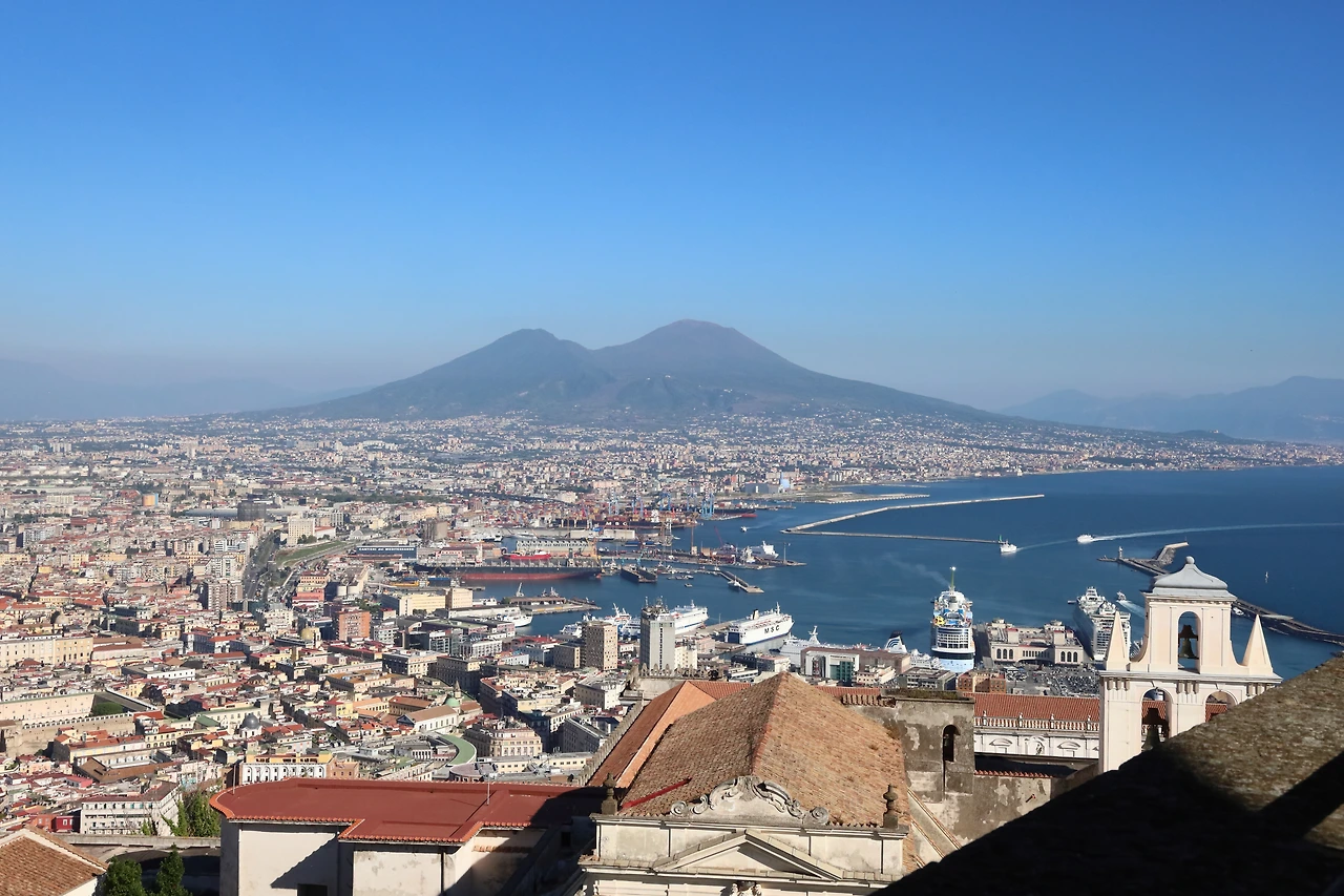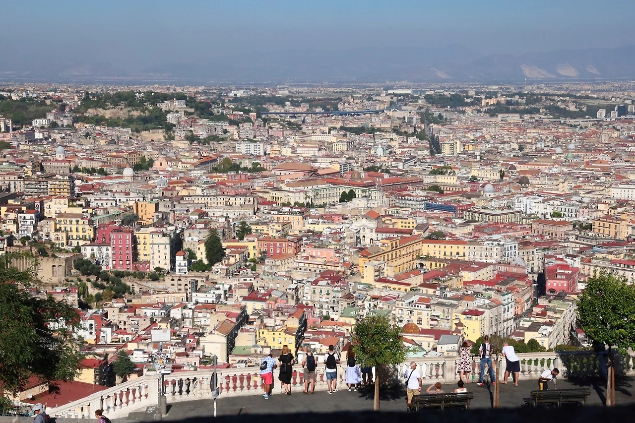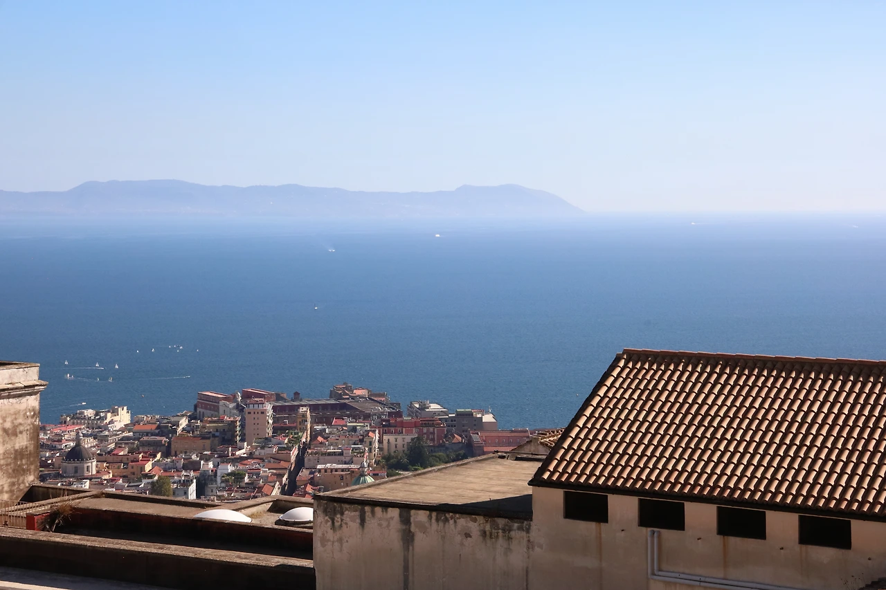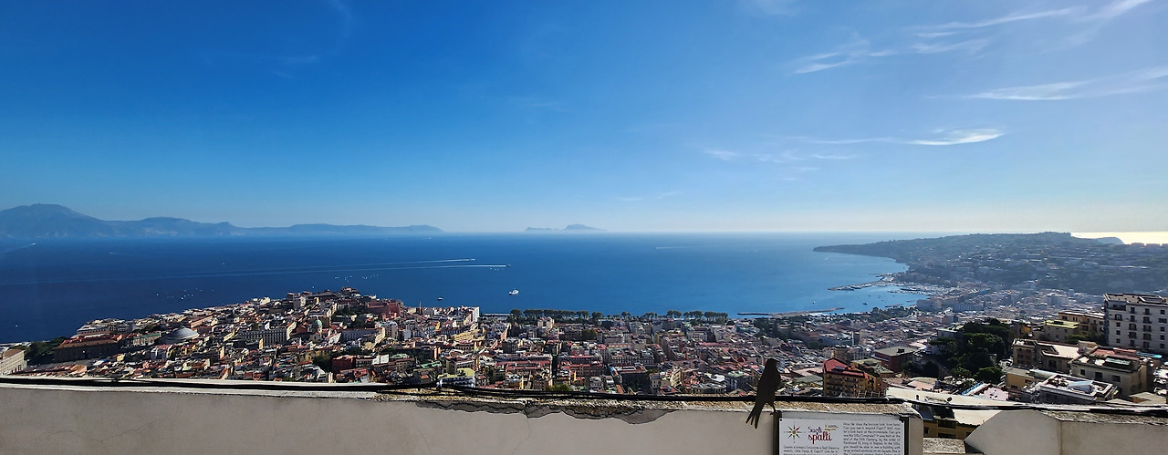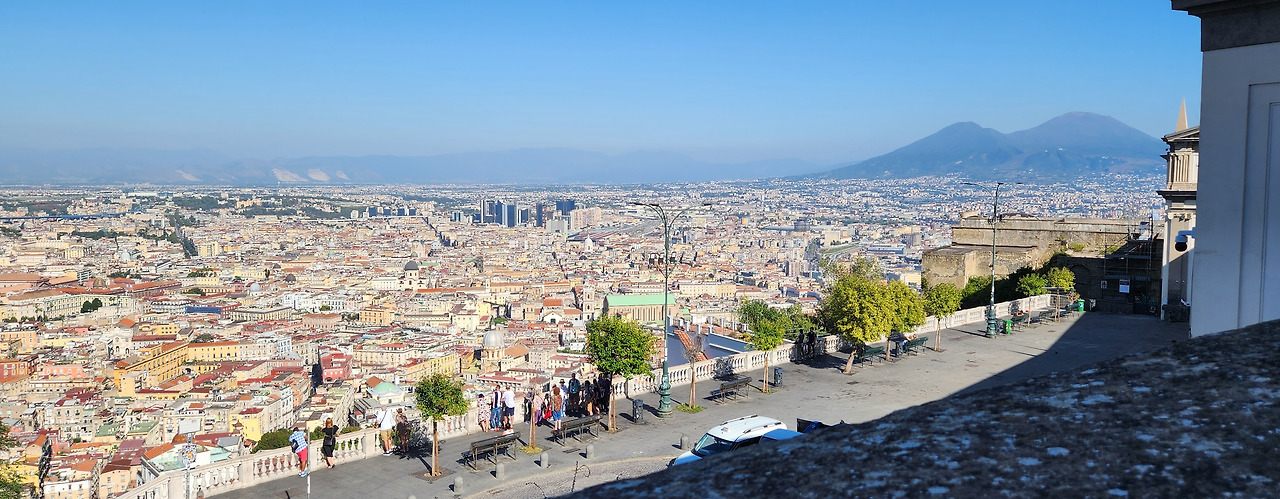 이제 푸니쿨라를 타고 성벽 전망대를 가보기로 한다. 입장료를 내야 하는 일종의 관광지이지만, 꽤 괜찮다는 후기가 많았다. 나무와 산과 도로로 점철된 지난 며칠간의 나는 푸른 풍경에 목이 말라 있었다. 이 성벽에 올라오면 비로소 나폴리가 베수비오 화산 바로 옆에 위치해 있는 게 눈에 보인다.