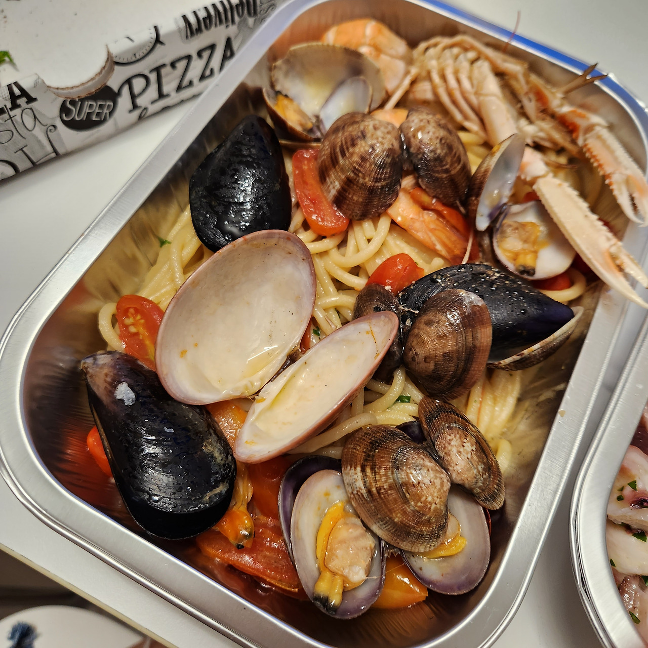 하늘은 핑크빛으로 물들어오고, 배는 다시 적당히 고파졌다. 밥 먹을 시간이다! 대부분의 레스토랑은 앉아서 먹는 경우 자릿세를 3유로-5유로 정도 지불해야 하기 때문에 저녁은 테이크아웃을 하기로 했다. 바다 근처로 갈 수록 해산물이 점점 맛있어질 것이라는 기대로 큰 맘 먹고 메뉴를 세 개나 주문했다. 이 정도면 어릴 때 꿈꾸던 '부자' 축에 속하는 사람 같아지는 느낌이다. 혼자서 괜히 우쭐거려 본다. 후기를 남겨보자면, 루콜라와 햄이 들어간 피자는 맛이 없기 어렵고, 문어 샐러드는 크로아티아에서 먹었던, 바르셀로나에서 먹었던 문어 요리만큼 부드럽지는 않았지만 신선한 재료 맛이었다. 의외로, 해산물 파스타의 구성품인 바지락 조개는 정말 야들야들하니 맛있었다. 따로 주문해서 먹고 싶을 정도로! 파스타 소스가 레스토랑마다 조금씩 다르지만, 고소하고 간이 잘 된 해산물 베이스의 소스였다. 한국에서 먹는 파스타만큼 크림이 들어간 짙은 맛은 아니지만, 올리브유와 마늘 구성보다는 좀 더 간간하고 진한 색감의 소스. 파스타도 사실 거기서 거기라는 생각을 가지고 있긴 하지만, 역시 남이 해주는 파스타가 젤로 맛있다고 생각이 든다.