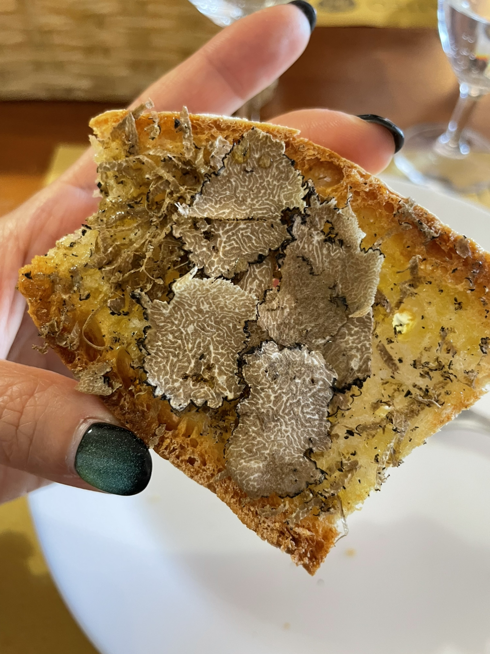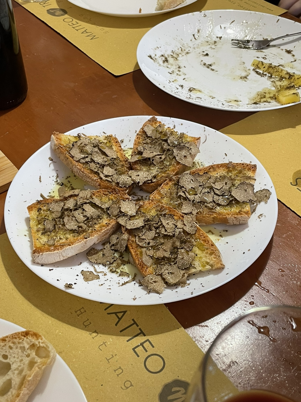 그 뒤로는, 배부름과 호사라는 기억밖에 남지 않을 정도로 많은 양의 요리를 먹었다. 트러플 가루와 조각과 오일은 호화스럽게 요리 위에 얹혀졌다. 이탈리안답게 재료 그 자체의 맛이 느껴지는 식사였다. 빵과 치즈, 햄과 감자, 파스타까지 트러플과 어울리지 않는 요리는 없었다. 겨우 오늘 만난 사람들과 둘러앉아 식사를 하는 이 상황이 낯설고 어색하기도 했지만, 혼자만의 여행 가운데 북적거리는 식사도 나쁘지 않았다. 아무래도 앱으로 참여하는 활동의 특성상 (에어비앤비는 미국 앱이니)미국인들이 대부분인 활동이었는데, 이야기를 나눠보니 다양한 나이대, 다양한 직업, 다양한 이유로 이탈리아를 여행 중인 사람들이었다. 또 문득 새롭게 느낀 것은 한국이라는 나라는 더 이상 세계 어디를 가도 누군가에게 낯설거나, 모르는 나라가 아니게 되었다는 점이었다. 한국 음식 김치와 한국 술 소주, 한국 쇼프로그램을 이야기하는 외국인들 사이에서 나는 묘한 이질감과 편안함을 동시에 느꼈다. 모두들 한국에 여행을 와봤거나, 와보고 싶다고 이야기한다. 나는 10년 만에 현실이 아닌 꿈을 꾸고 있는 걸까? 비현실적인 양의 트러플을 먹은 날이어서일까? 와인도 마시지 않았지만 몽롱히 취해서 트러플 헌팅은 끝이 났다.
