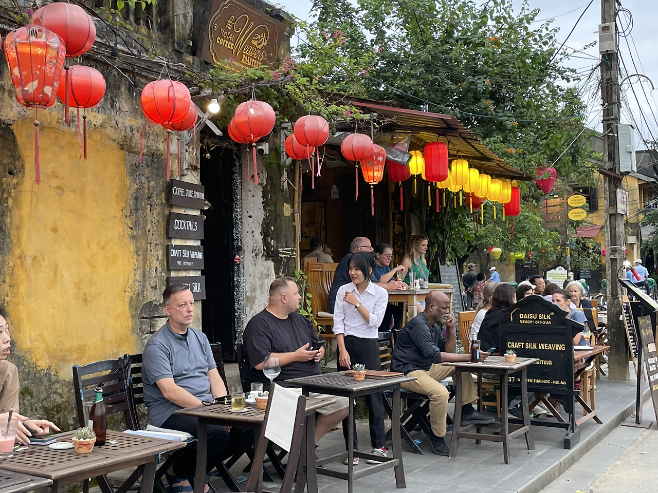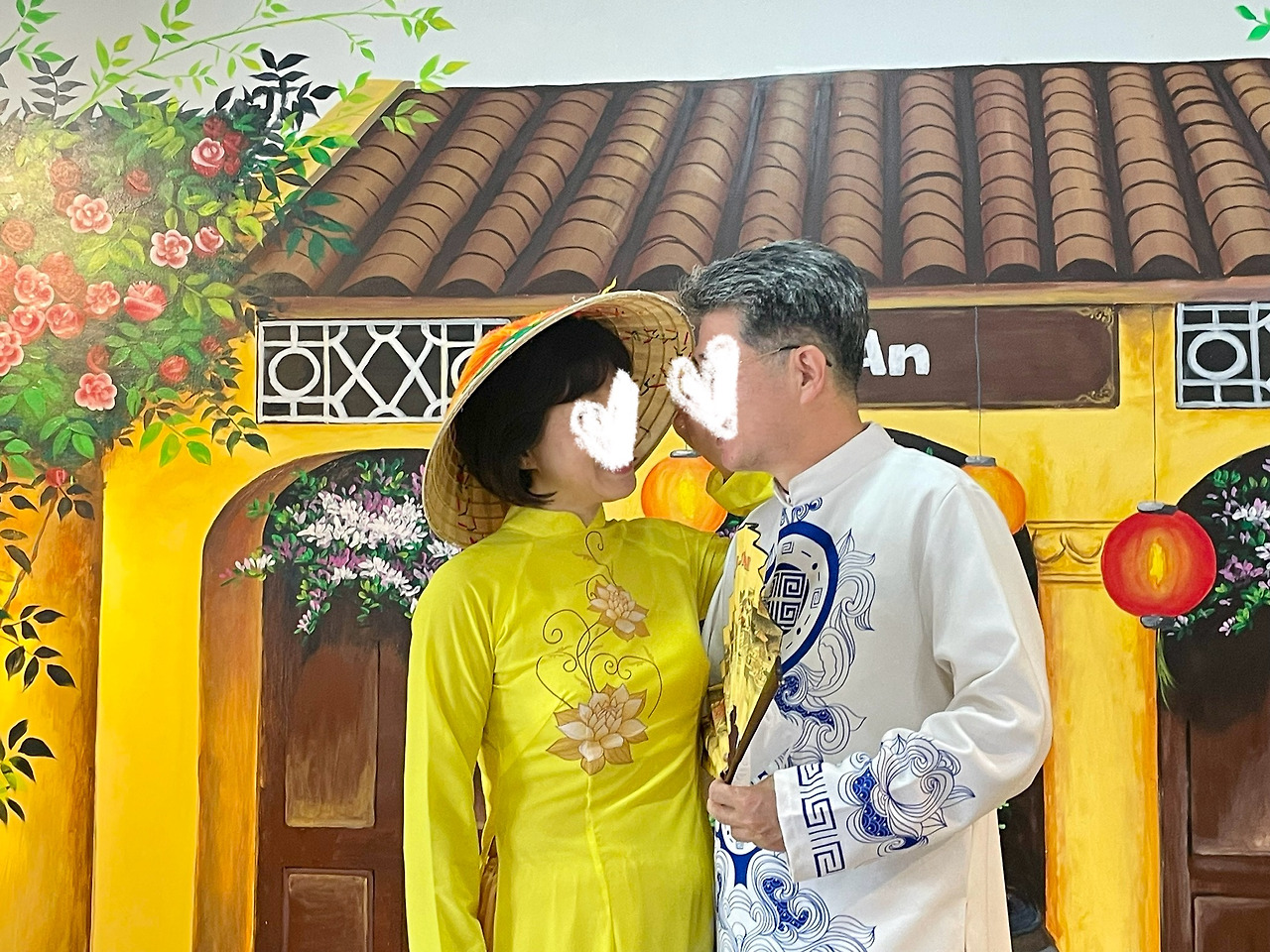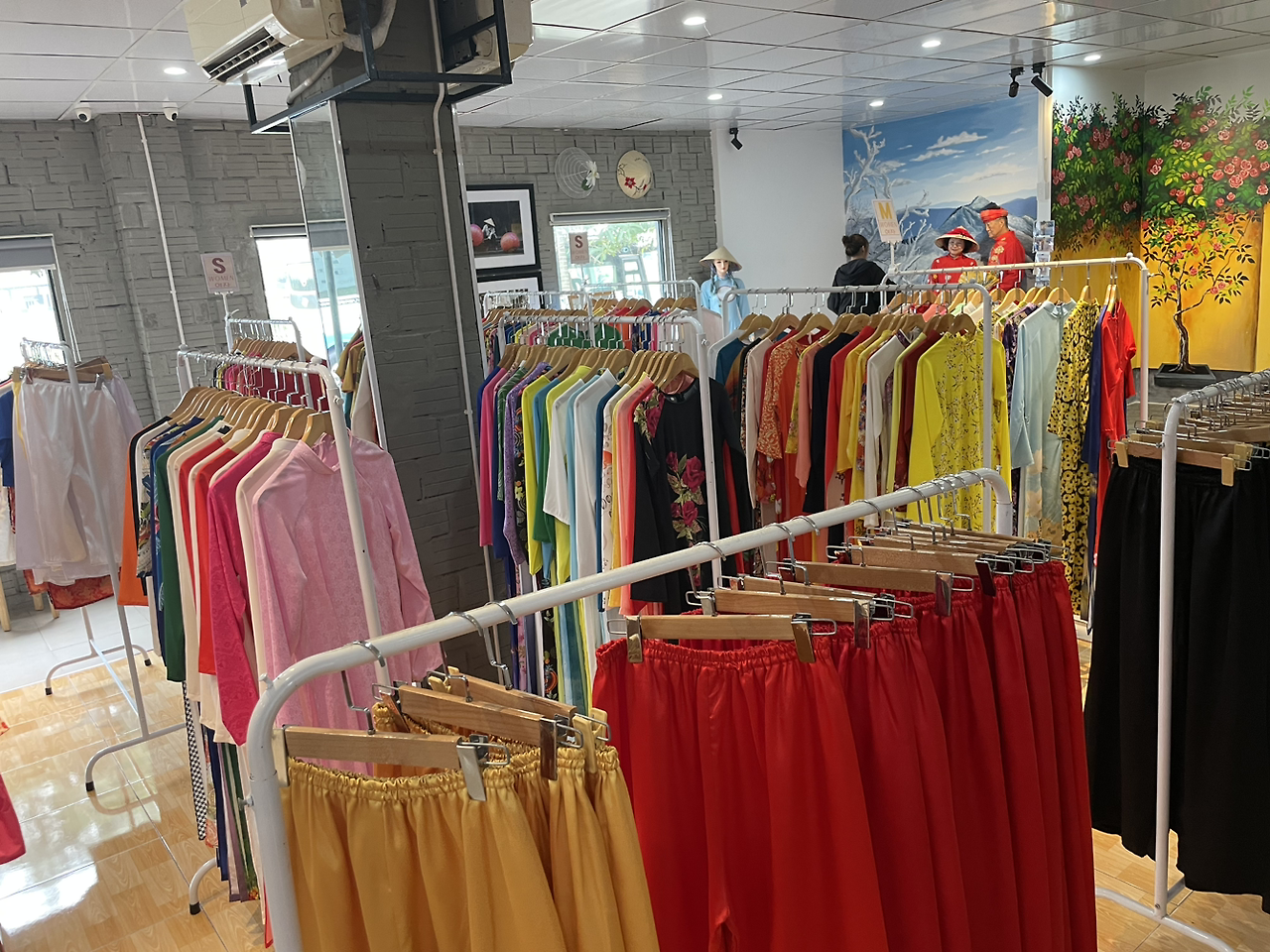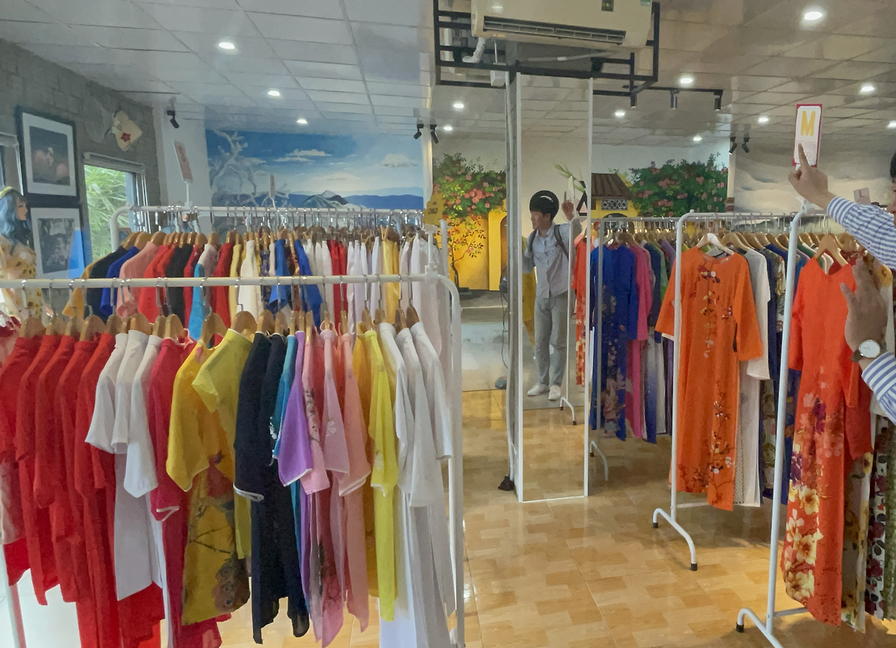 그 뒤로 코코넛 커피는 무서워서 먹고싶은 마음이 싹 사라졌다. 죽음의 문에 가까이 다가갔다가 돌아온듯 신체가 놀라 얼떨떨해진 상태로 내가 주문했던 연유커피만 마셨다. 그와중에 커피는 쫀쫀하게 맛있었고, 직전에 코코넛 조각만 아니었다면 이 맛을 더 잘 음미할 수 있었을텐데 하며 아쉬운 마음이 들었다. 약간의 트라우마를 남기고 그렇게 미케비치를 떠나 호이안으로 향한다. 먼저, 베트남 전통의상인 아오이를 입어볼 수 있는 체험관으로 향했다.
