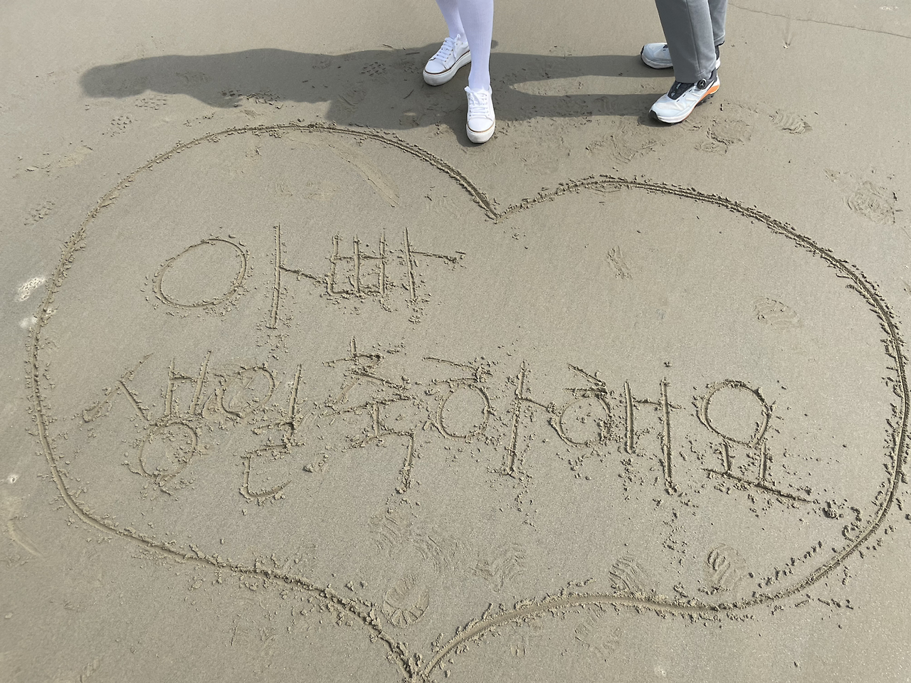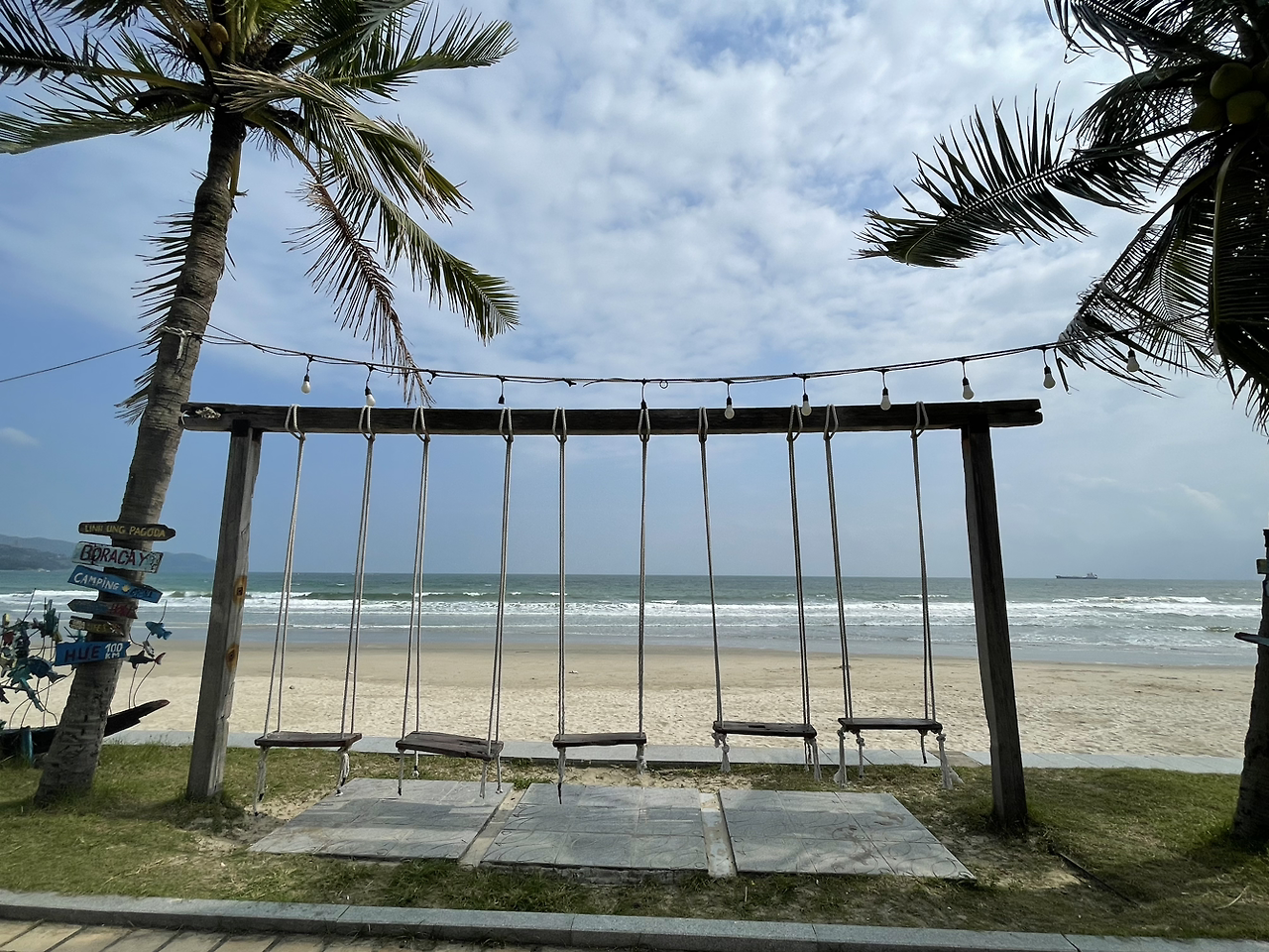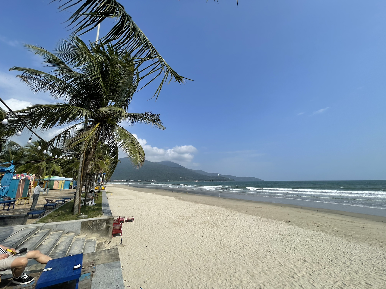 다음 행선지는 미케 비치! 23km나 된다는 이 해변은 평평하게 좌우로 펼쳐진 고운 모래의 모래사장이 아름다운 곳이었다. 다낭 여행을 오면 이 곳은 필수 코스 중 하나인 듯 보였다. 옆에 해변 카페가 있어 베트남에서 유명한 코코넛커피, 연유 커피, 망고 주스 등 음료를 주문해서 잠깐 이 곳에서 여유를 부릴 수 있도록 허락받았다. 이 시기의 다낭은 흐리거나 비가 자주 온다고 하는데, 이 날만큼은 햇빛이 눈부셔 해변가 구경을 하기 좋았다. 아빠 엄마 나 그리고 남편은 골고루 음료수를 한 종류씩 시켜서 기다리는 동안 열심히 기념사진을 남겼다.