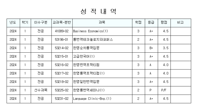 평균 평점 4.22 (역시 학부에서도 욕심내보지 못한 높은 학점)