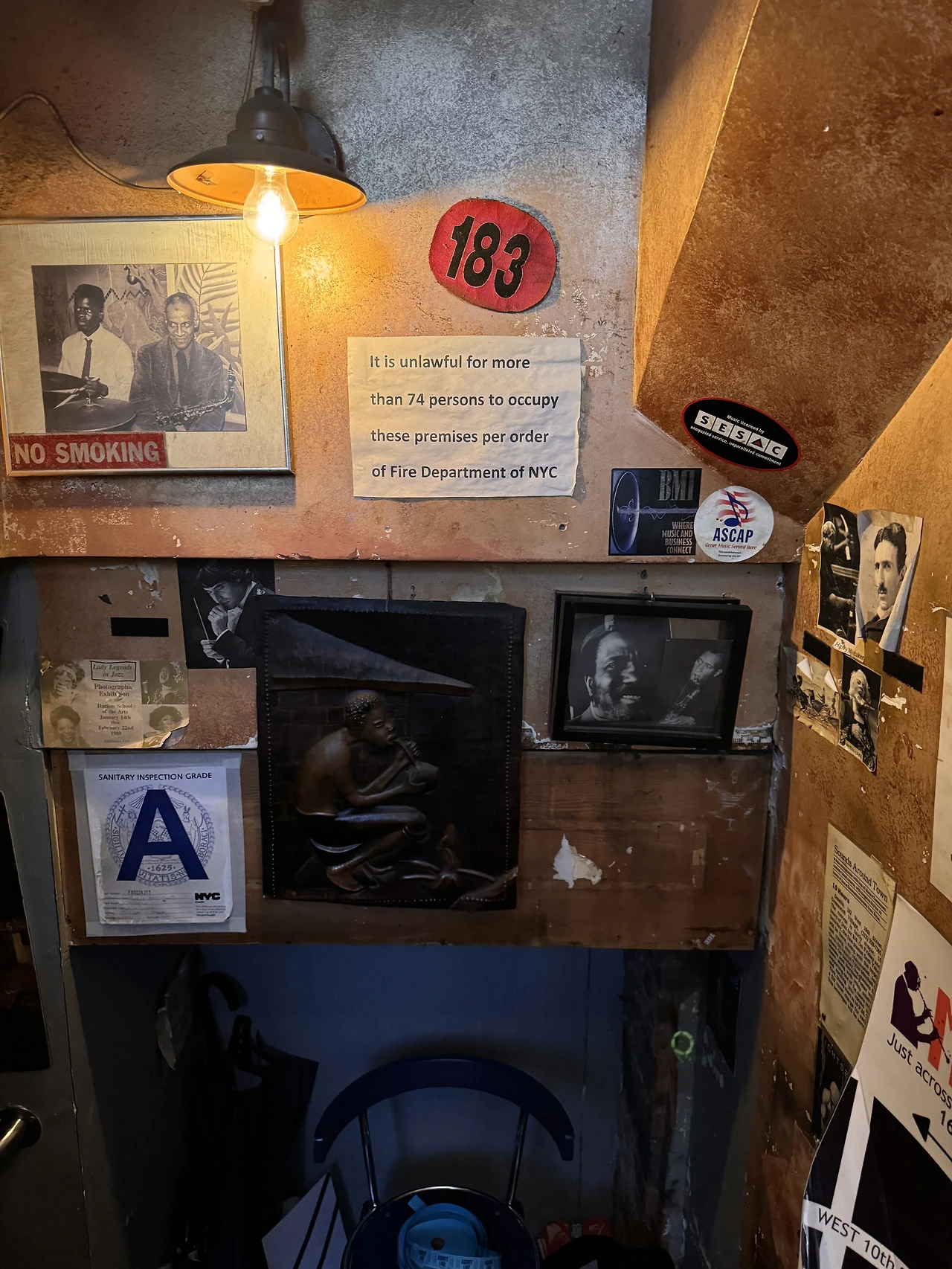 여행을 준비하던 시점에 뉴욕 버킷 리스트를 정리했었다. 여덟개 정도 되는 항목 중에서 가장 먼저 떠오른 항목은 바로 '뉴욕 재즈바 방문'이다. 나는 평소에 여러 장르의 음악을 두루 즐겨 듣는 편이지만, 동시에 좋은 음악을 선별해서 듣고 싶은 욕구가 큰 사람이라 뉴욕의 수 많은 재즈바 중 어디를 방문할지 한참을 고민했다. 공식 사이트나 예약 페이지만으로 찾은 여러 재즈 클럽들은 다 고만고만해보였다. 이것저것 검색을 해봐도 결정을 도무지 내릴 수가 없었고, 그러다가 뉴욕으로 출발을 해버렸다. 뉴욕에 도착하고 나서야 간신히 두 곳으로 선택지가 추려졌는데, 하나는 뉴욕 야경 뷰가 멋지게 펼쳐진 빌딩 4,5층 높이에 있는 재즈바였고, 다른 하나는 공간은 다소 협소하지만 머릿 속에 그려왔던 왠지 조금은 협소하고 어둑어둑한 상상 속의 뉴욕 재즈바 같아보였다. 나는 어디를 선택했을까? 결국 고민한 시간이 아까울 정도로 명확하게 후자가 내 취향이었던 것 같다.