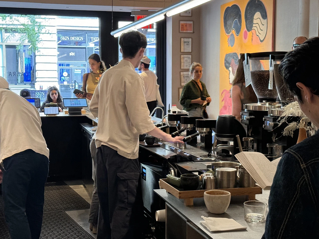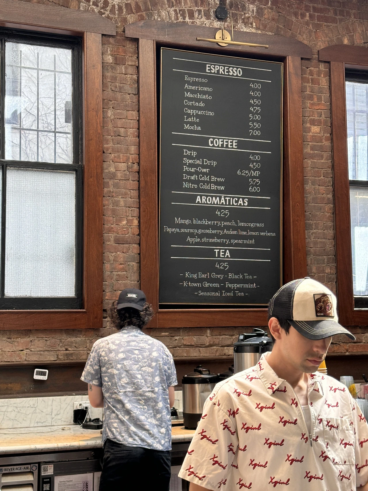 푸어오버 식의 드립 커피와 에스프레소 커피 음료, 알콜 및 논 커피 음료도 팔고 있다. 나는 카푸치노, 친구는 아이스 아메리카노를 주문해서 마셨다. 가격은 저렴한 편은 아니었다. 메뉴판 기준으로 각각 4달러, 6달러 정도인 것 같은데 세금이 붙으면 대략 20% 정도 최종 결제 금액이 올라간다. 뉴욕에 와서 처음 마신 커피였는데 맛은 괜찮았다. 바깥 풍경을 함께 마시면서 뉴욕 바이브를 들이켜 봤다. 소호를 방문한다면 한번쯤 가볼만하다.