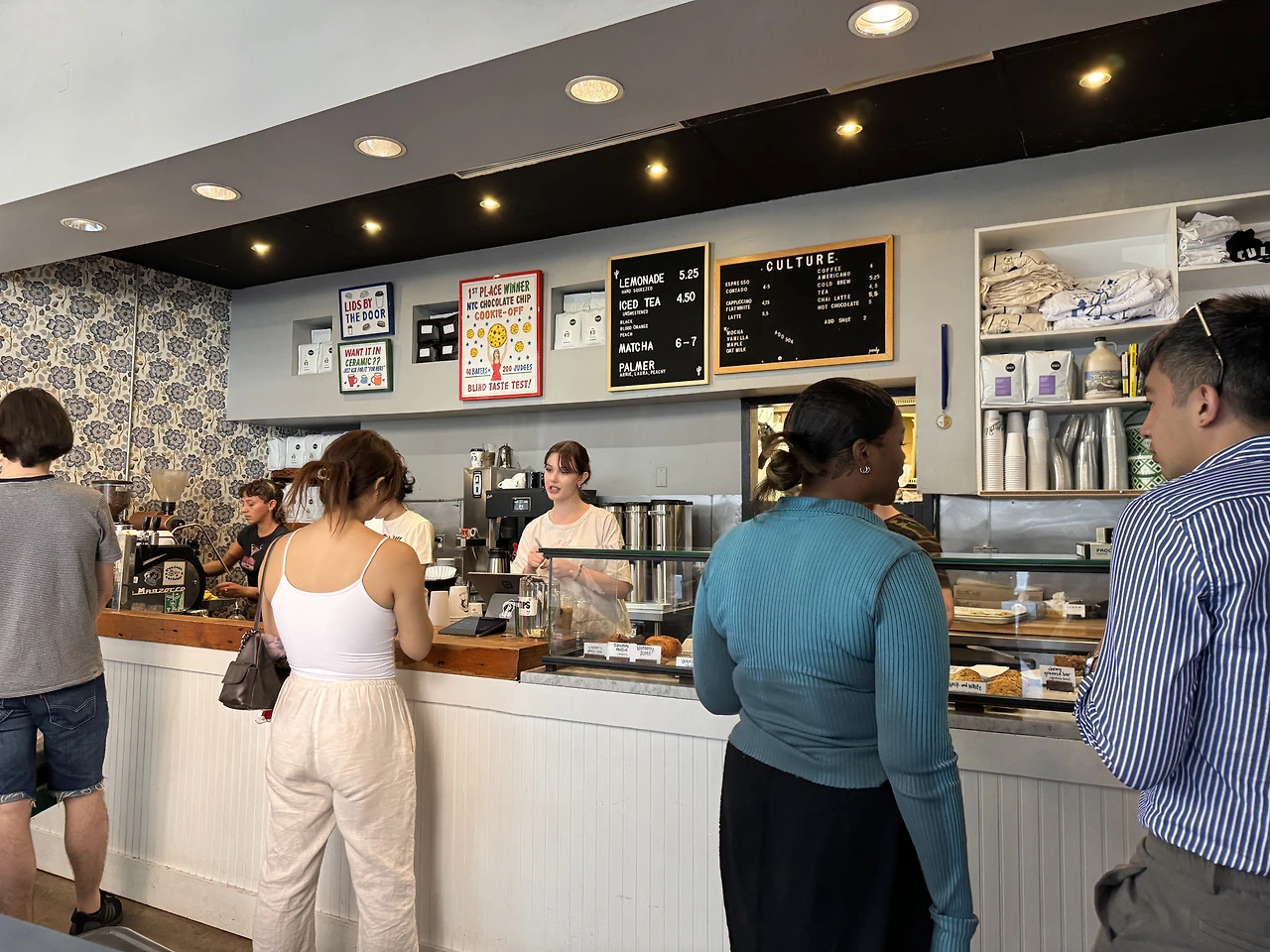 구글 평점을 보고 찾아갔던 곳이다. 매장 내부가 그리 크진 않아서 테이크아웃을 주로 하는 매장인 것 같다. 주변 뉴욕 직장인들이 와서 사가는 느낌(?). 줄이 길게 늘어서기도 했는데, 음료 제조 속도와 회전율은 빨라서 생각보다 오래 기다리진 않는다. 커피와 아메리칸 쿠키류를 팔고 있다. 공원가서 먹으려고 아아와 오트밀 레이즌 쿠키를 샀다. 커피 맛도 아주 보편적인 괜찮은 아이스아메리카노 맛이었는데, 다른 사람들은 따뜻한 우유 들어간 라떼류 음료를 많이 주문하는 것 같았다. 미국 사람들은 신기한 게 대부분의 음료를 정말 Big size로 먹는다. 몸의 크기 자체가 달라서일까. 음료 소화 양이 정말 대단하다고 느낀다.