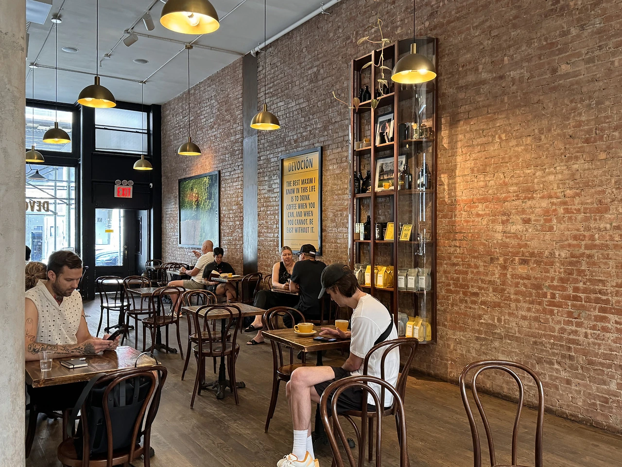 영어로는 devotion, 프랑스어로 헌신을 의미하는 디보씨옹. 맨하탄 및 브루클린에 여러 지점이 있는데 이 까페는 참 맘에 들었다. 일단 스벅이랑은 다르게 본토 사람들이 오는 로컬 카페 느낌이 낭낭했고, 커피 맛도 좋았다. 두 군데 다른 지점을 가긴 했지만 유일하게 뉴욕에서 두 번간 까페.