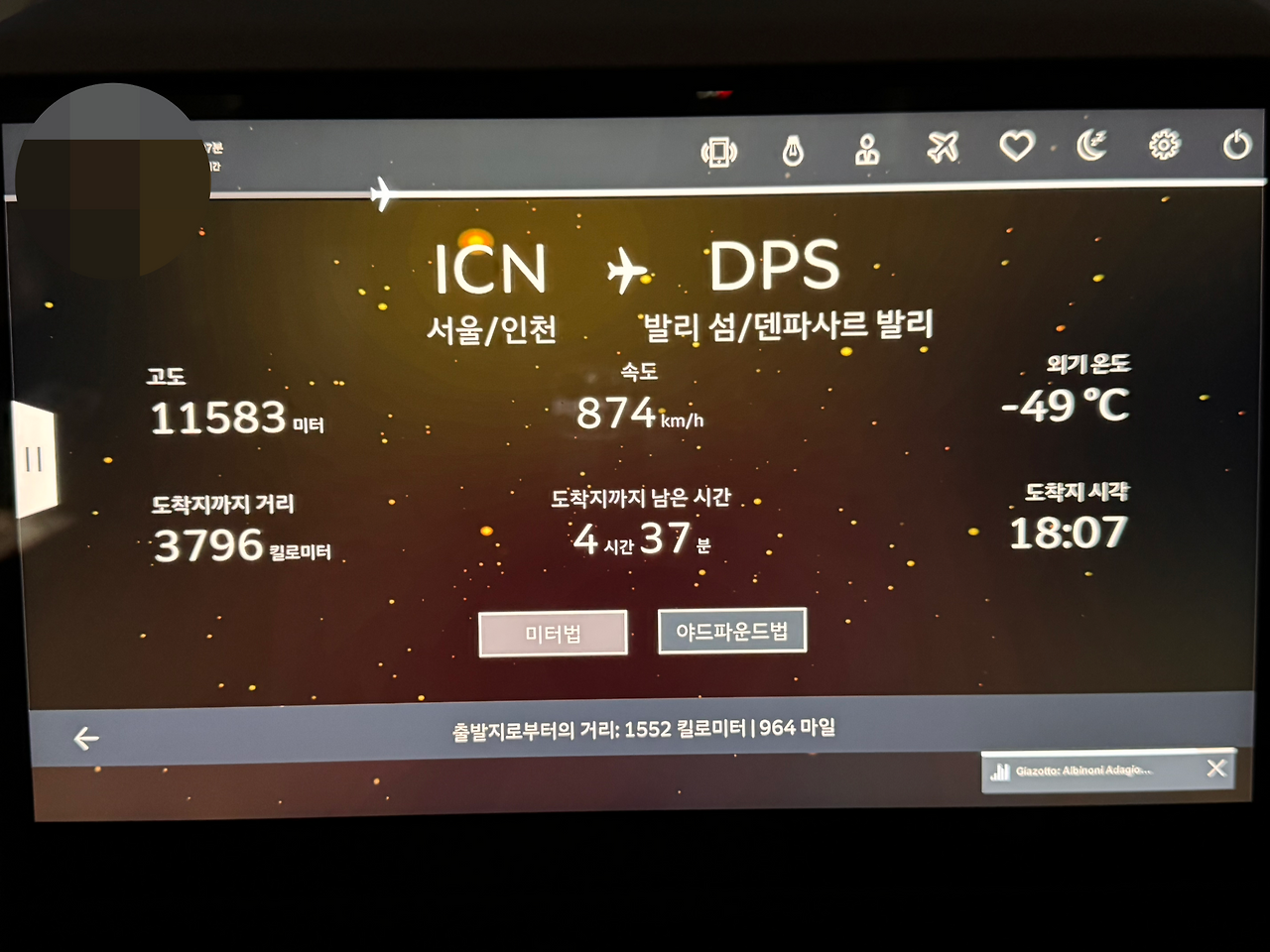 비행 시간은 약 7시간 반. 다행히 비행기가 신 기종이라 실내도 깨끗하고 모니터 화면 해상도도 좋다. 하지만 어쩐지 여행을 떠나는 비행기 안에서는 맘놓고 푹 쉬기가 힘들다. 뭐라도 들여다 보고 조물조물대다가 피곤한 몸으로 Bali 에 도착한다.
