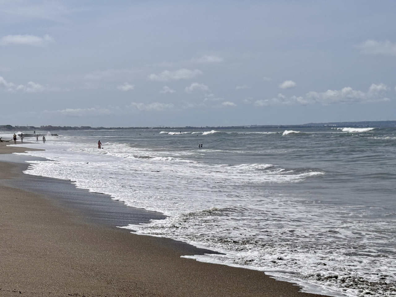 해변 산책을 해보기로 했다. 짱구에 있는 해변은 눈으로 보기에도 파도가 매우 거칠어 보였는데, 알고 보니 이곳은 서핑 성지였다. 사람들이 통행 하는 곳까지 파도가 철석 철석 언제 몸을 적셔 버릴지 모를 정도로 거세게 쳐들어 왔다. 멀리 보이는 서퍼들만이 다른 세계에 있는 것 같았다. 조심조심 걷다가도 어느새 파도에 발이 젖어 버렸다. 포기하고 신발을 벗어 들고 걸어가 본다. 습한 동시에 시원한 감각이 느껴진다. 햇빛이 조금만 세게 내리 쬐어도 옷 가지를 벗어 던지고 바다에 풍덩 뛰어 들고 싶은 온도다. 그렇게 잔뜩 언성을 높이 파도를 구경하다가 다시 골목으로 들어왔다.