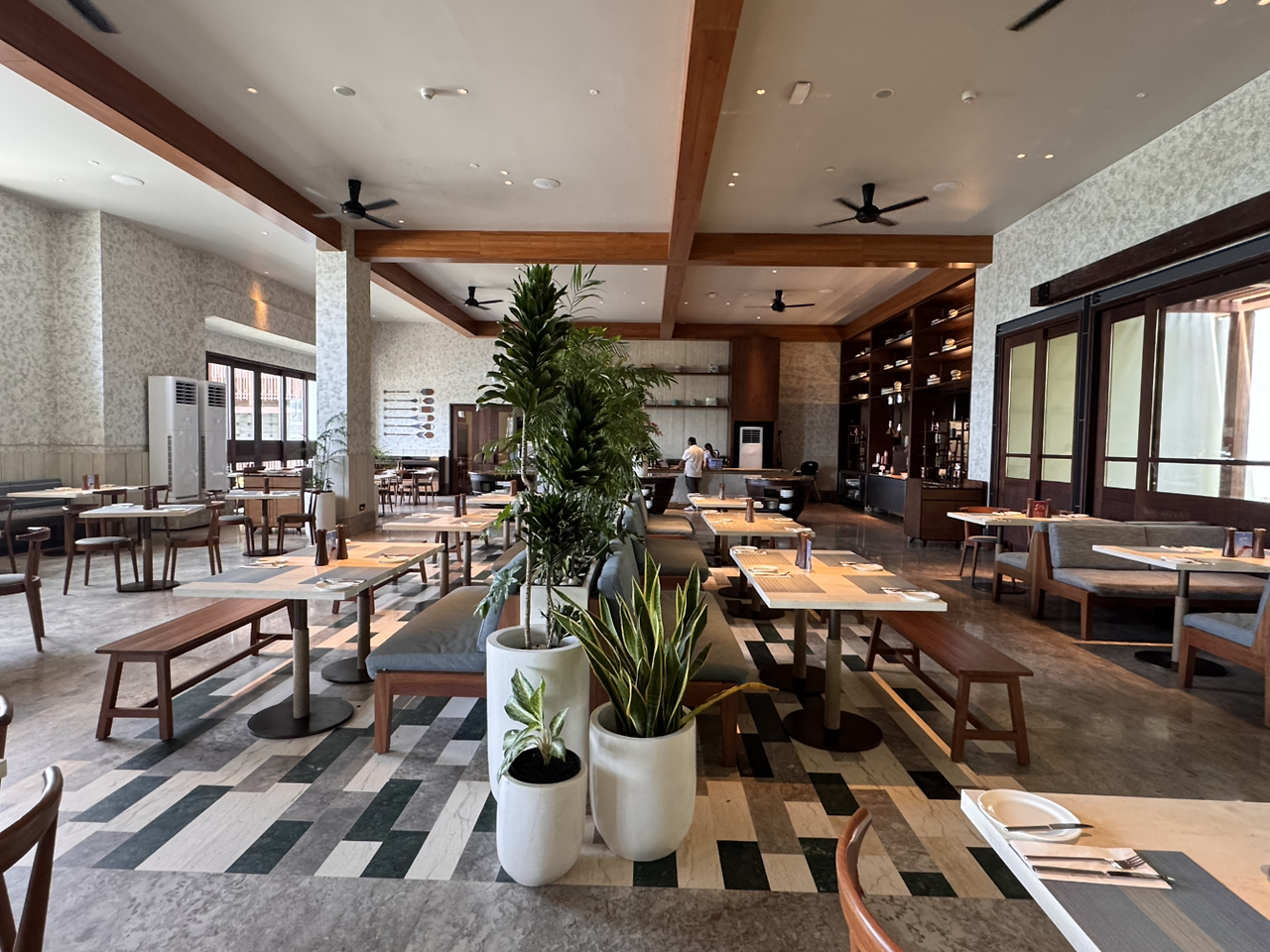 더위도 피할겸, 점심도 먹을겸 구글맵을 뒤지다가 깔끔해보이는 레스토랑을 찾았다. 홀리데이인 내부에 있는 레스토랑이었는데, 브랜드 체인이라 그런지 숙소 규모나 위치도 좋고 더 깔끔한 느낌이었다. 무엇보다 레스토랑 내부와 가는 길이 아름다웠다. 꼭 숙박을 해야만 즐길 수 있는건 아니니 맛있는 밥 한끼 기분좋게 먹고 가기로 했다.