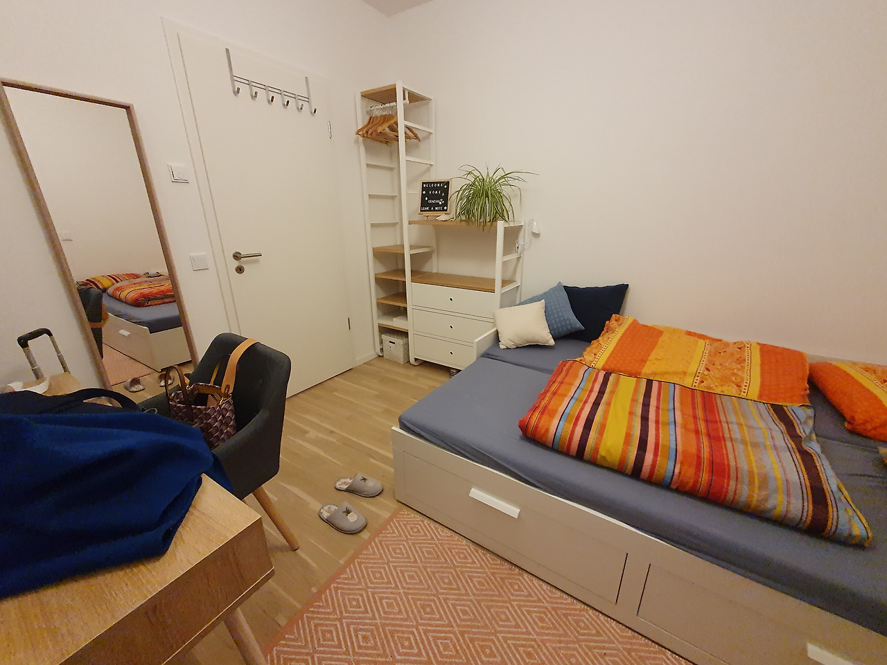 뮌헨을 본거지로 두고 한 달 정도 머물려니 머물 곳이 당장 필요했다. 호텔은 언감생심이고, 단기도 장기도 아닌 기간을 머물 적당한 가격의 좋은 퀄리티의 집을 찾는 것은 정말 어려웠다. 몇 날 며칠 에어비앤비를 검색, 또 검색하다가 맘에 드는 집을 발견했다. 놀랍게도 이 집은 거실까지 있었다. 한 달을 머물면 약간의 할인도 해주는 조건이었기 때문에 더 늦기 전에 빨리 집을 찜해야겠다는 생각뿐이었다. 집주인과 부드러운 대화가 오가고, 결정을 내린 뒤 에어비앤비 결제를 진행했다. 숙소로 가는 길이 약간 외져 보이고 Bahn역에서 가까운 곳은 아니었지만, 조금 여유를 가지고 걷거나 트램 한 번으로 역에 갈 수 있었고 중앙역도 그리 멀지 않은 위치였기 때문에 약간의 타협을 할 수밖에 없었다.