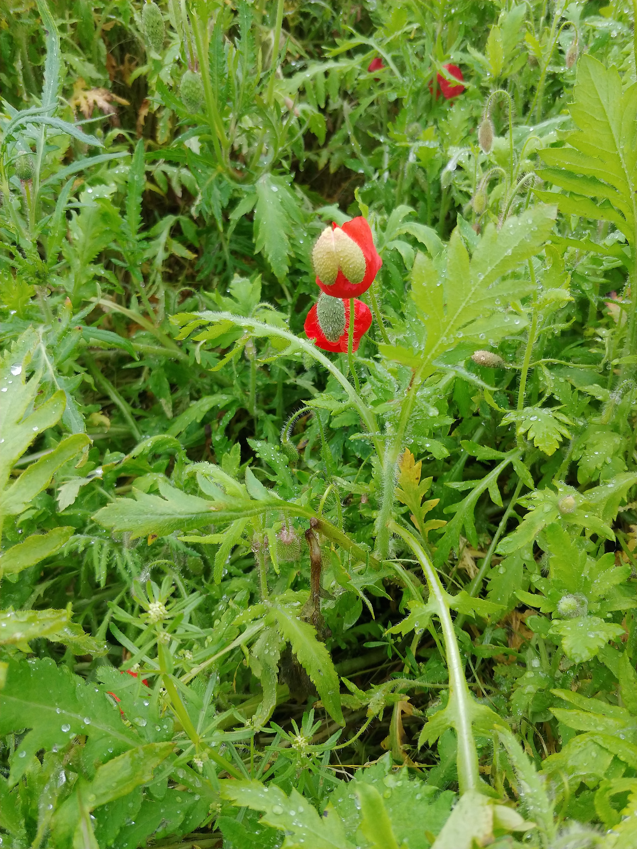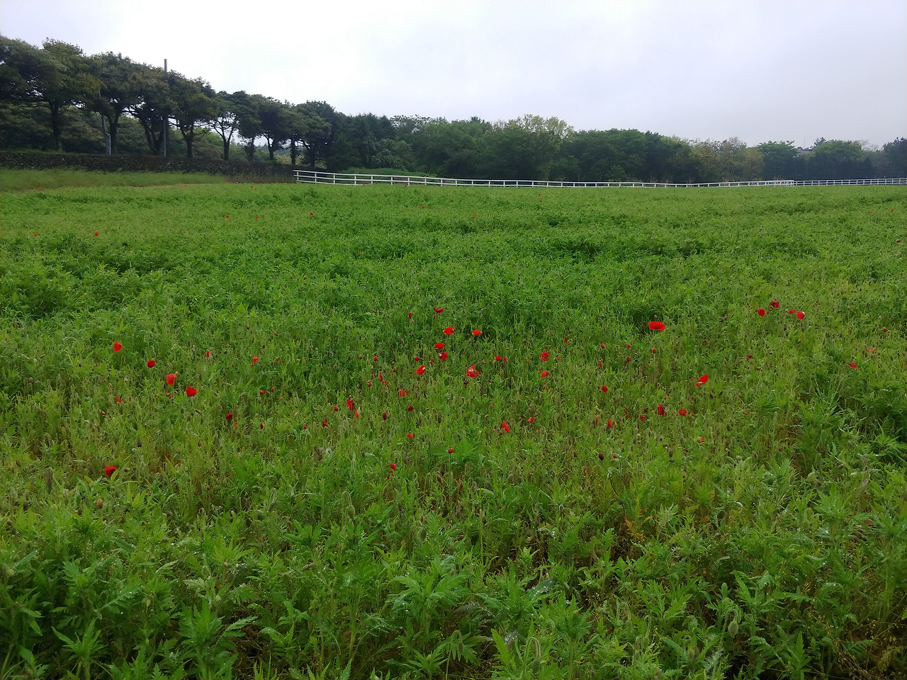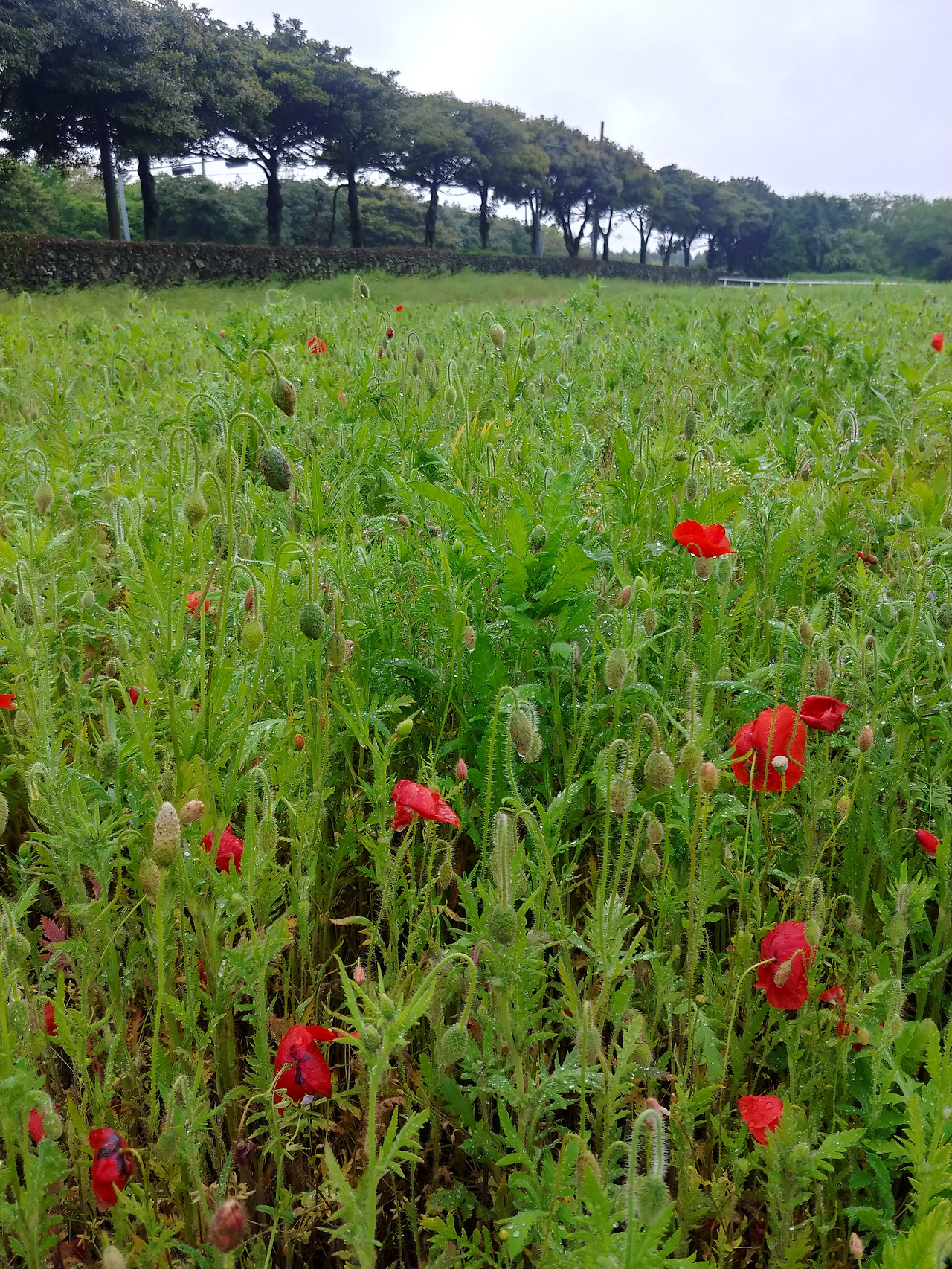 바로 위의 사진을 찍은 날은 사실 비가 그치기를 바라면서 예보를 모른 척하고 뛰쳐나간 날이었다. 양귀비 밭이 있다고 해서 오전에 다녀와야겠다 마음을 먹고 출발했는데, 비가 긋기는커녕 점 점 더 후드득후드득 제 맘대로 내리기 시작하는 것이었다. 이미 출발했으니 돌아올 수는 없고 한번 가보기나 하자는 생각에 도착한 양귀비 밭은 사람이 정말 없었다. 하긴, 누가 이 비에 꽃밭을 오겠냐며.. 그 심정이 이해가 갔다. 차라리 집에 드러누워서 카페나 알아볼 걸, 여행 계획이나 짜 볼걸 그랬나. 하는 생각이 머릿속에 버글버글 거리는 상태로 꽃밭에 나 있는 길을 따라 길게 걸어 본다. 이건 밭이라기 보단 벌판이군. 아직 양귀비는 제 철이 아닌지 봉오리를 모두 피우지도 않은 상태였다. 실망을 하자니, 왠지 아직 성장 중인 아이한테 너는 왜 아직 덜 컸니?라고 불평하는 모습 같아 꾹 참았다. 봉오리들은 크기도 작고 숫자도 그리 많지는 않았지만, 초록들 사이에서 충분한 존재감을 보여주고 있었다. 조금 더 다가가서 바라보니 물기를 머금고, 이들도 나처럼 다음 날의 햇빛을 기다리고 있는 것 같았다.