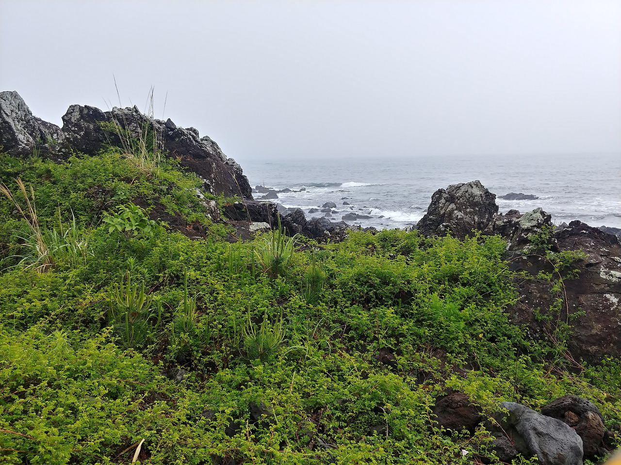 이런 날은 사진을 찍어 담으려고 하기보다는, 빗물이 닿지 않는 곳에 앉아서 조용히, 그리고 오래오래 바다를 느껴보는 것이 좋다. 엉뚱하게 비를 맞아봐도 좋다. 제주이기 때문에 물 맞은 기억도 좋게 희석될 테니까.