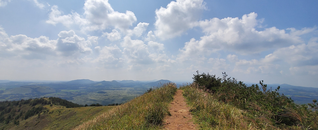나의 첫 제주 오름은 거문오름이었다. 세계문화유산으로 선정된 거문오름은 미리 예약을 하고 가야만 입장이 가능했고, 완보하는 데에도 짧은 코스는 1시간 정도, 긴 코스는 3시간 정도 소요되는 규모가 큰 오름이다. 깊이깊이 높이 높이 들어가야 하는 만큼, 생태계가 있는 그대로 보존되어있다고 해설사님이 자부할 정도로 그 아름다움의 깊이도 깊었다. 꽤 번거롭고 힘든 과정임에도 불구하고, 제주 여행 연속으로 2번 정도 거문오름을 오르면서 꽤 만족스러웠고 오름의 매력을 충분히 느꼈다고 생각했다. 그 때문인지, 이후로는 오름을 오르는 일에 그다지 미련을 두지 않고, 우선순위에서도 밀려나 있었던 게 사실이다.