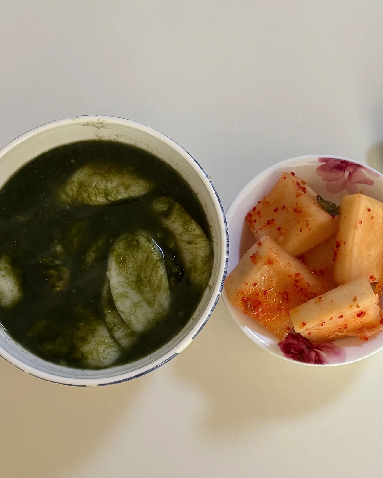 겨울이 되면 꼭 먹어야 하는 내 최애 집밥 메뉴, 엄마의 매생이 굴 떡국 두 그릇과 시원한 무김치를 아삭하게 물어 대며 배 안을 든든하게 채운 느긋한 오전을 보냈다. 이틀 동안 입었던 잠옷을 세탁기에 넣으며 집안 곳곳을 정돈한 후 “사랑해, 엄마”를 남겨 두고 제주로 돌아갈 준비를 잘 마쳤다.