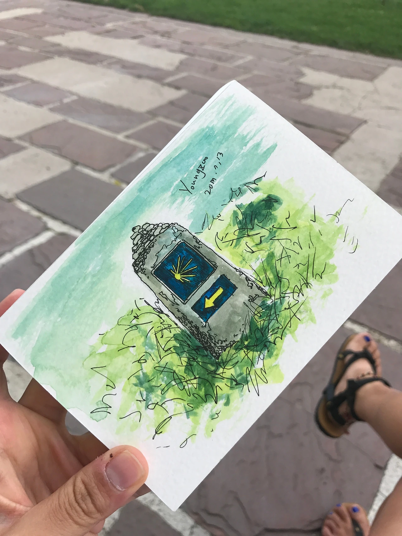 제가 엽서용 수채화지를 선호하는 이유중에 하나입니다. 콤팩트해서 여행용으로 딱일 뿐만아니라 가끔 편지를 쓸수있거든요! 호스팅 해준 카우치서핑 분께 직접 그려드린 그림(좌), 순례길 표시판(우) 두개다 외국인 분들에게 선물로 편지와 함께 드렸습니다
