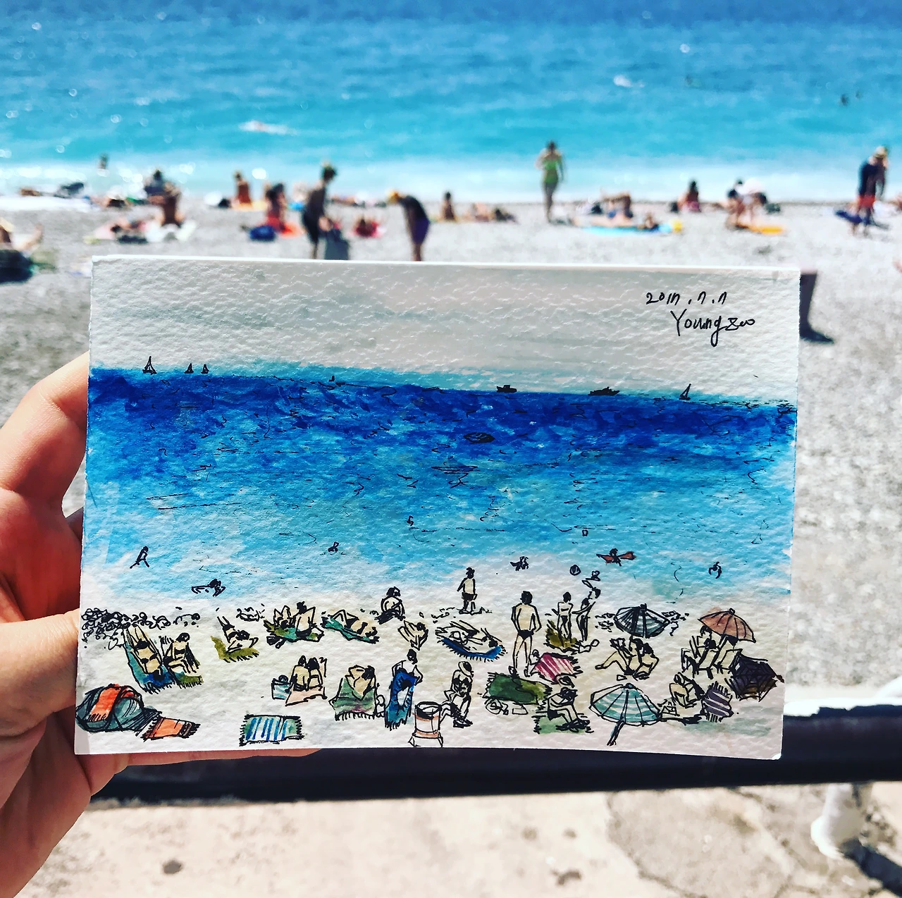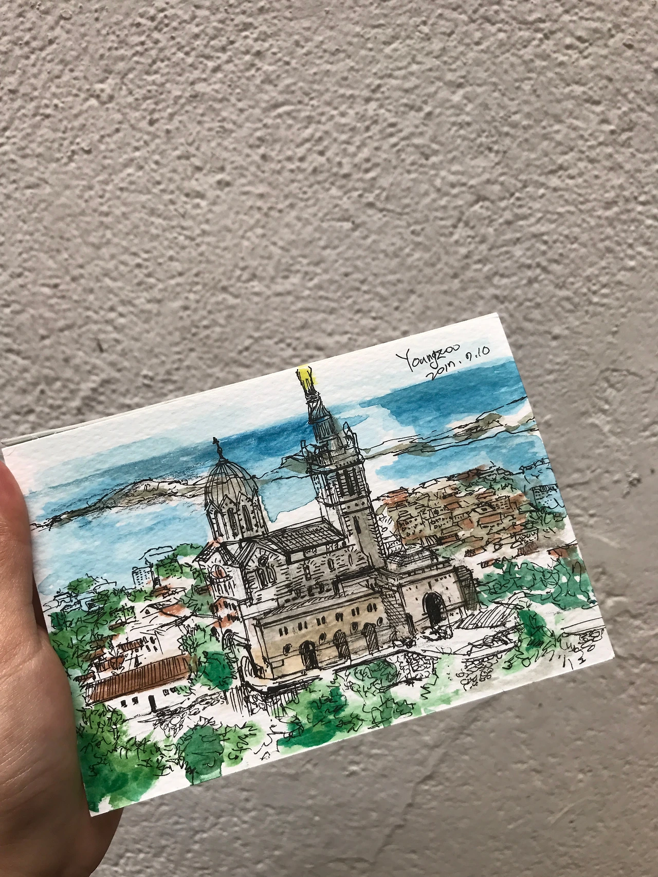 보통은 숙소에 돌아오거나 커피숍에 앉아서 찍어둔 사진을 보고 그릴 때가 많지만 (사실상 뜨거운 햇볕아래서 그림을 그리긴 쉽지 않죠) 하지만 막상 완성작과 함께 찍어둔 배경은 소장의 가치를 높히게 되는거 같아요.