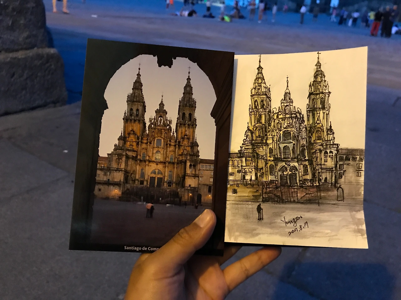 그래서 근처 기념품샵에서 산 산티아고 콤포스텔라 성당을 그리고 사진으로 남겨봤어요.