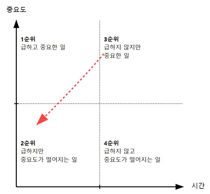 급하지 않지만 중요도가 떨어지는 일을 4순위로 처리하는 것이었습니다.