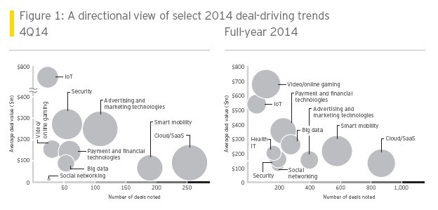 E&Y라는 big accounting firm은 M&A 관련 매우 유익한 report를 발간한다. 그 중에서 Global technology review라는 report는 꽤나 많은 정보를 제공한다. 14년 4분기 보고서를 보면서 몇가지 insight를 뽑아내 보려고 한다.