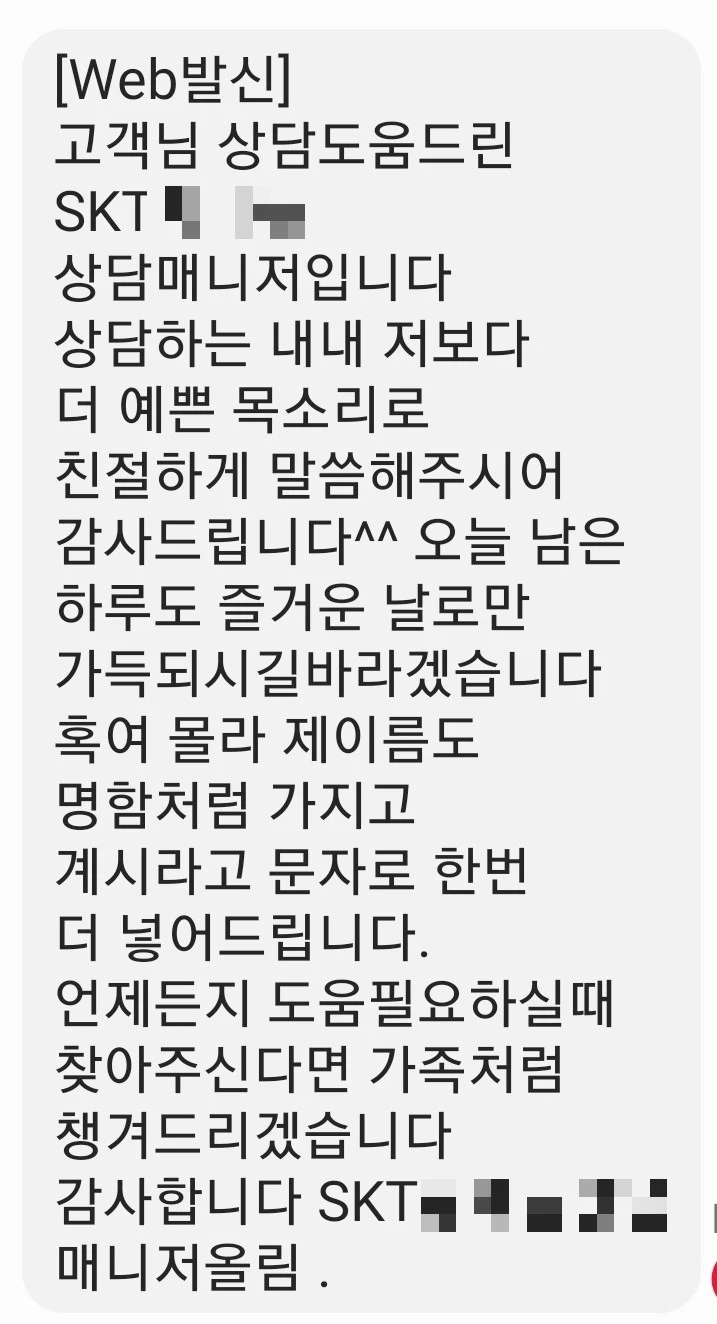 한 참의 통화 후 상담이 모두 종료되었다. 몇 초 후 이런 문자를 받았다.