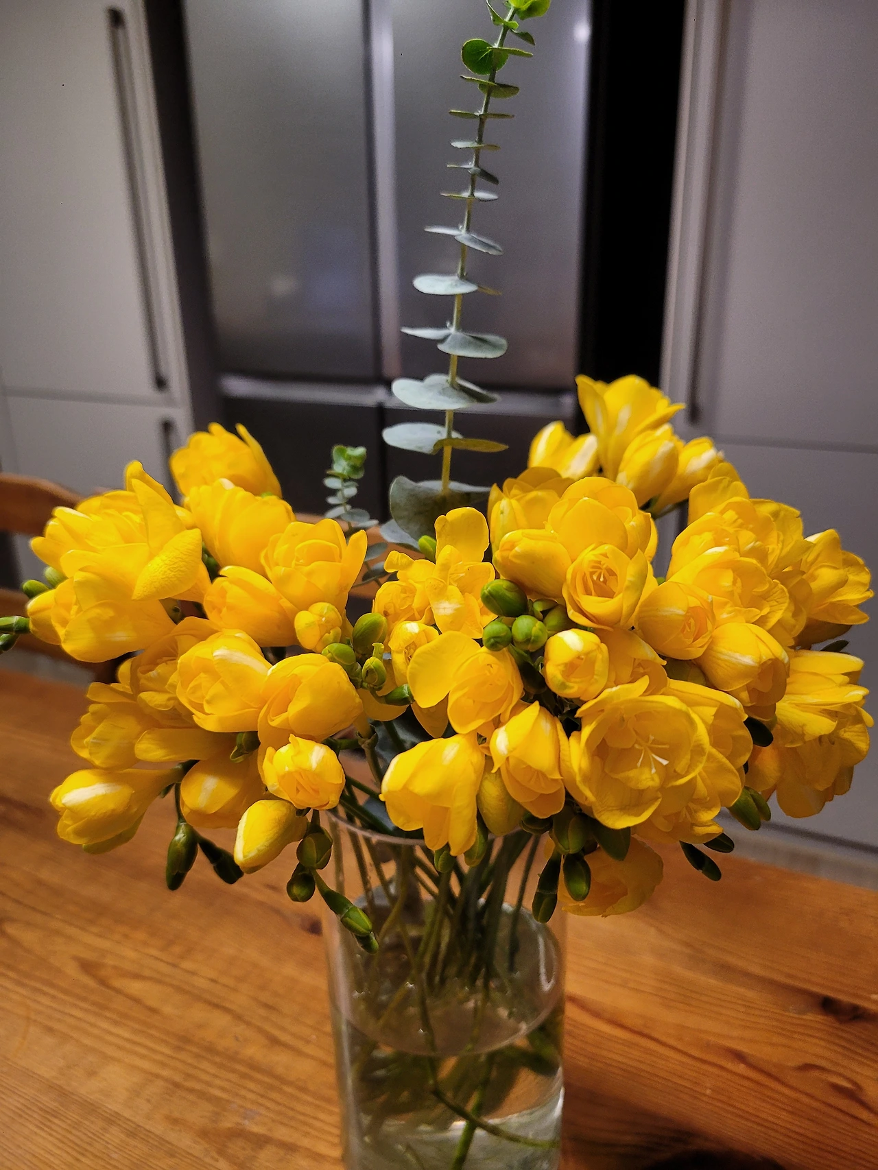 집에 오자마자 화병에 꽃을 꽂았습니다. 봄을 한가득 몰고 온 것 같아 기분이 좋아집니다. 저녁이면 지친 몸을 끌고 집에 올 식구들에게도 환한 봄을 선물하고 싶습니다. 마음이 설렙니다.