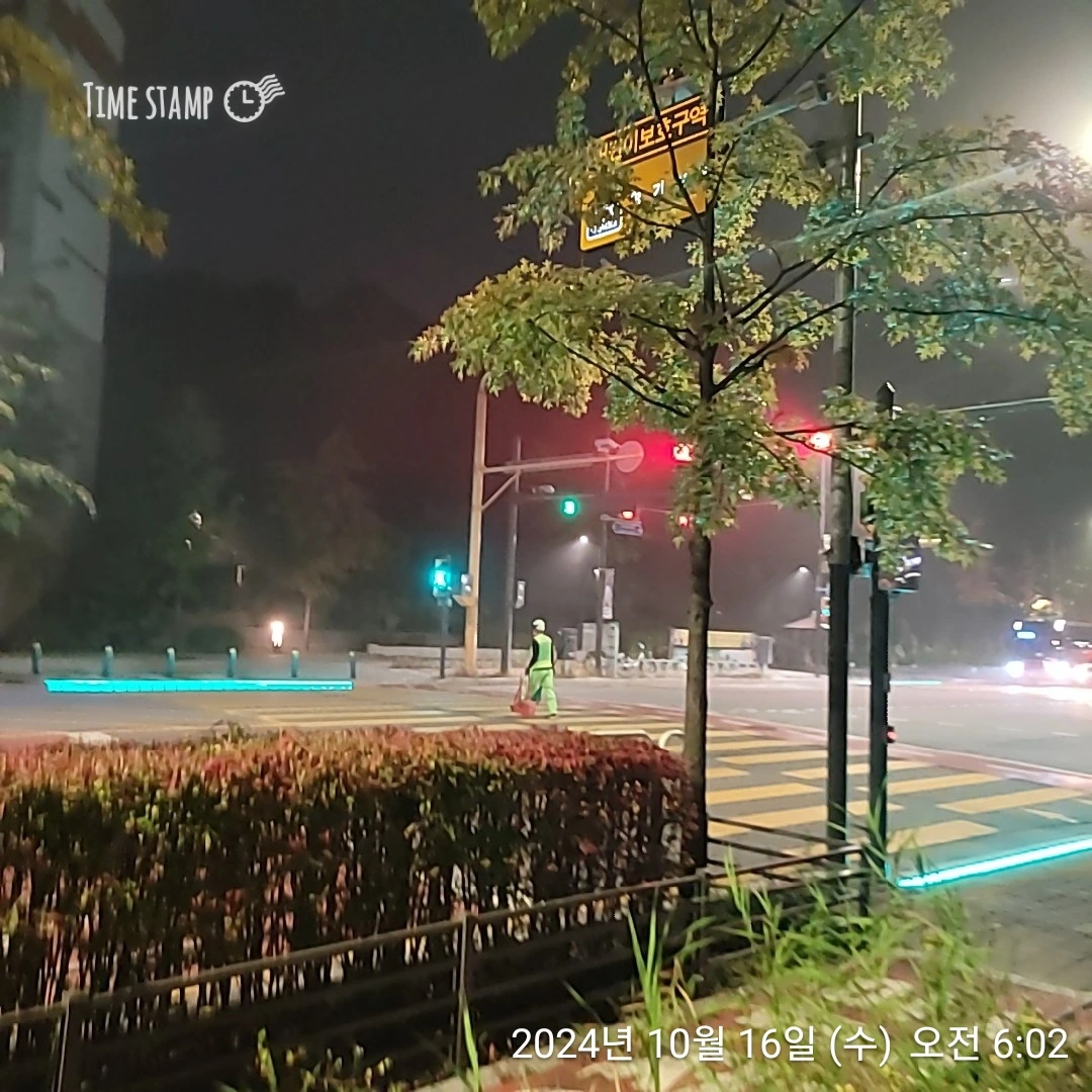 아파트 밖으로 나와보니, 환경미화원 분이 열심히 청소를 하고 있었다. 사람들이 깨기 전 원래대로 만들어 놓고 조용히 사라지는 분들이다. 고맙고 감사한 마음에 한 컷 남겨 두었다.
