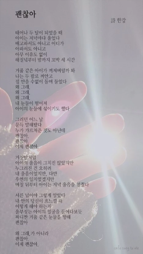 한 강 작가님의 <괜찮아> 시를 읽었다. 스스로에게 위로를 건네본다.