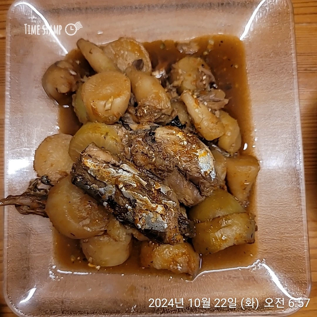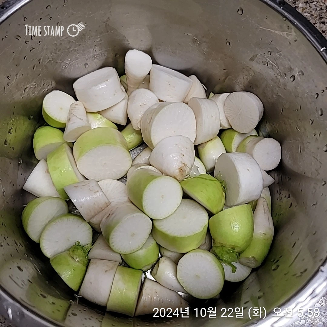 작은 무를 뚝뚝 썰어 무조림을 만들었다.