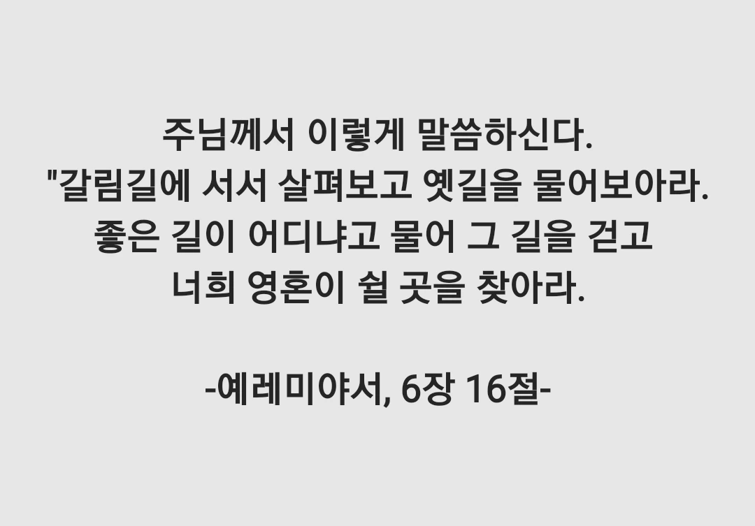 사랑의 주님. 저에게 생명을 주신 하느님. 제 눈과 귀를 여시어 참된 길을 찾게 하소서. 올바른 삶을 살게 하소서. 미약하고 부족한 저 영혼을 돌보소서.