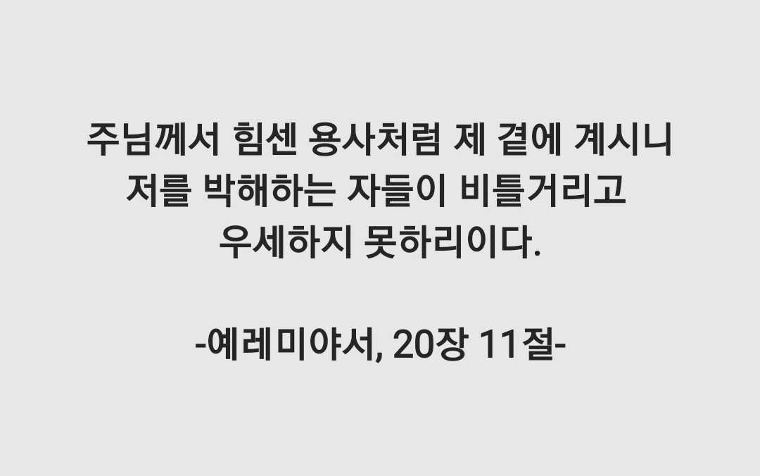 주님께서 힘센 용사처럼 제 곁에 계시니,