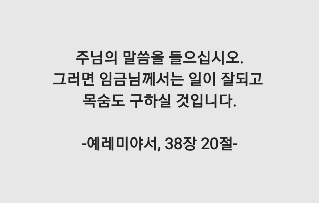 당신 말씀에 귀 기울이겠습니다. 충실한 주님의 종으로 오늘 저의 소임을 다 할 수 있도록 저를 이끄소서. 지혜와 인내를 허락하소서.