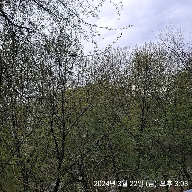 <첫 주와 비교해 보니 나무에 연두색 새순이 돋았다.>