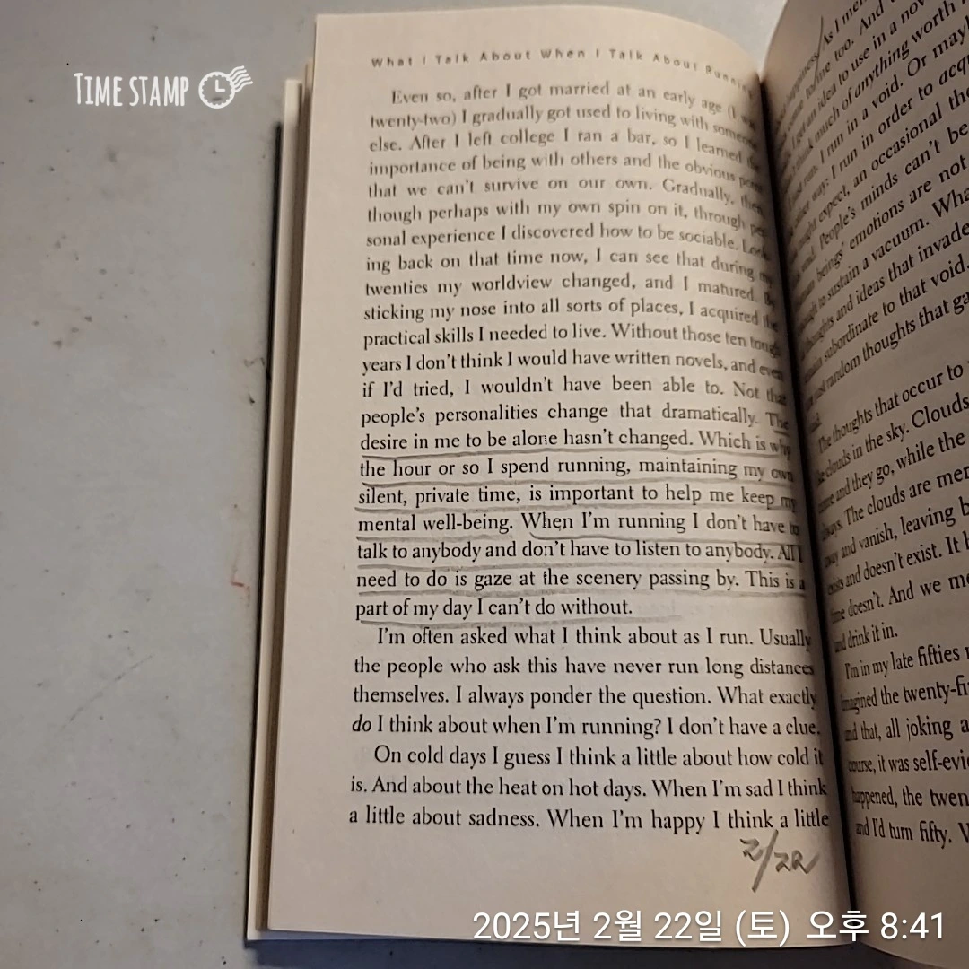 하루키는 혼자만의 시간, 오로지 자신에게 집중할 수 있는 달리기를 즐긴 것 같다.