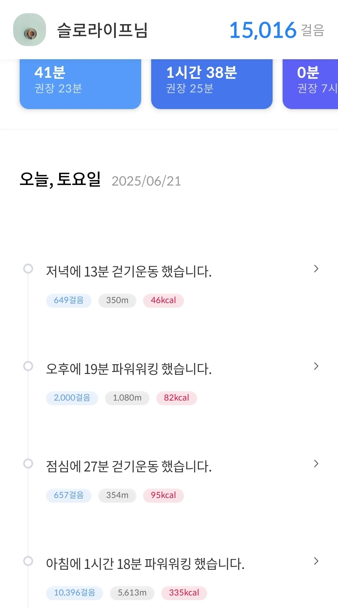 체력이 향상되고 있는 건가?