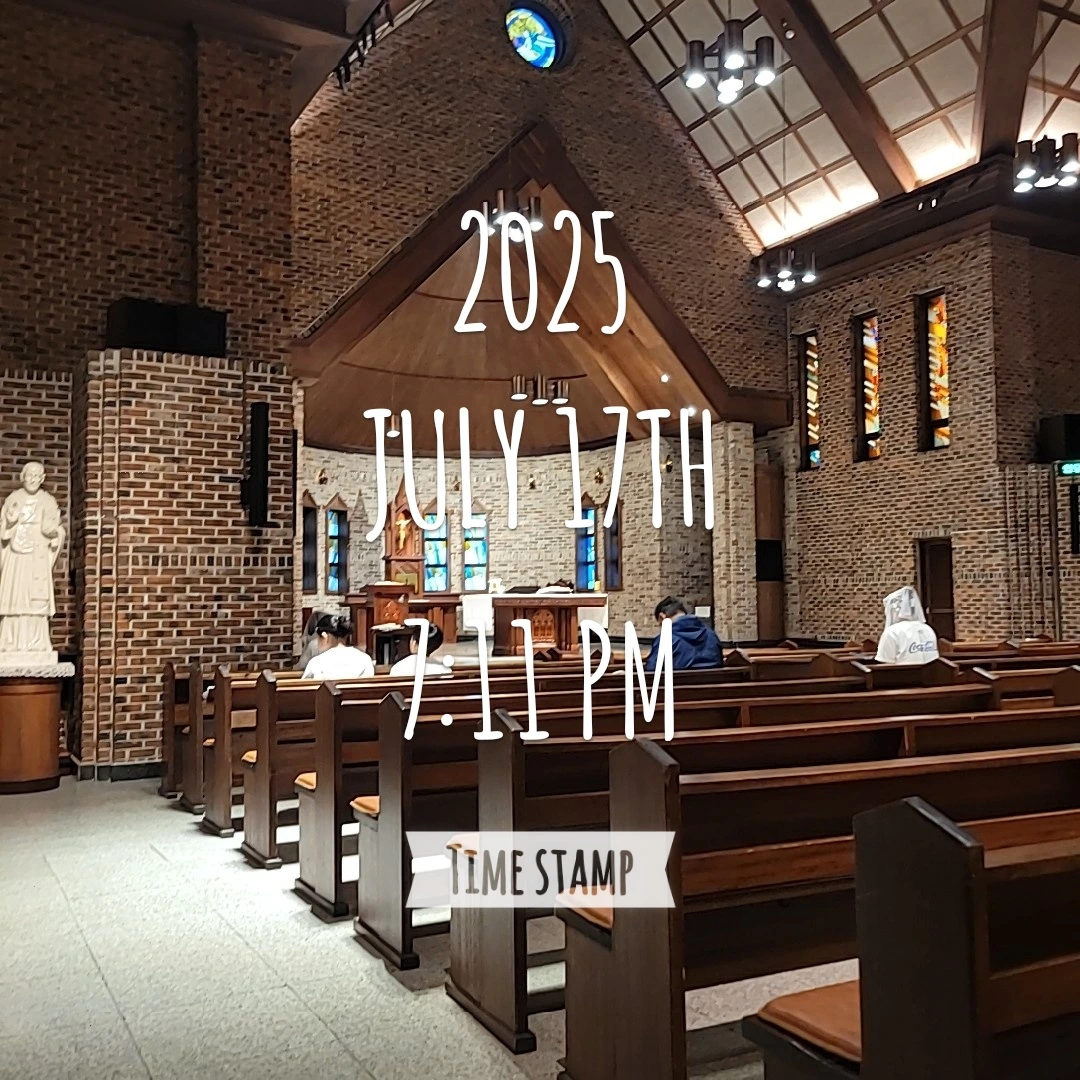 저녁에는 비가 잠잠해져서 우산하나 챙겨 들고 성당에 갔다.