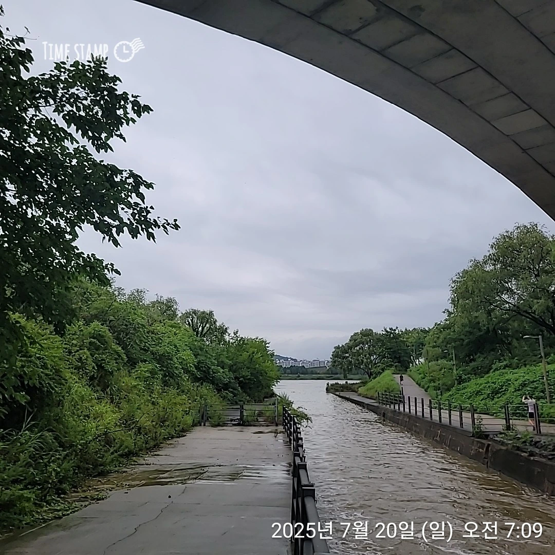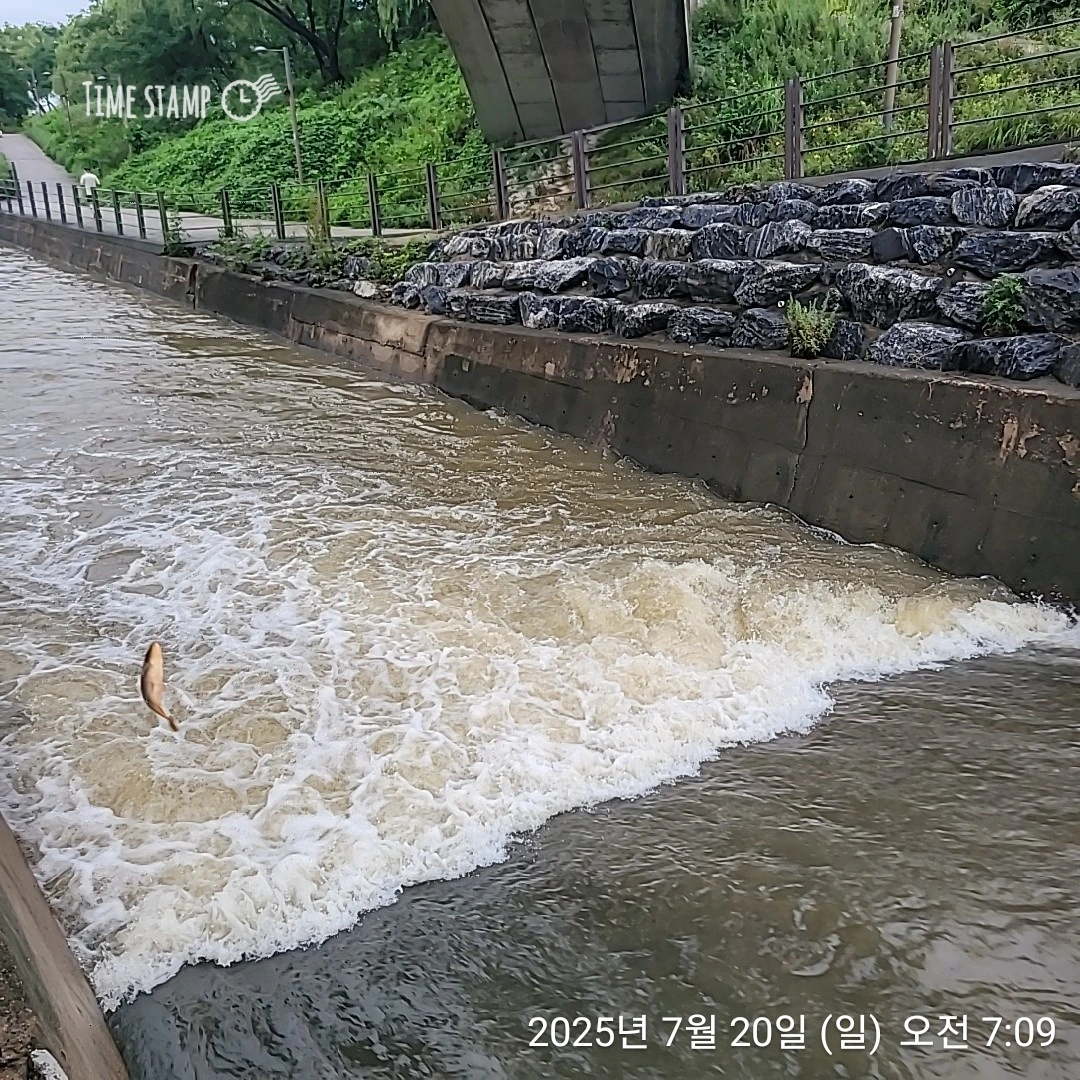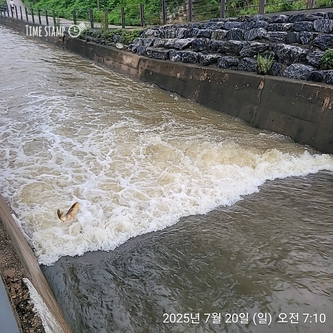한강으로 유입되는 곳이 평소와 달리 물의 양과 유속이 엄청나다.