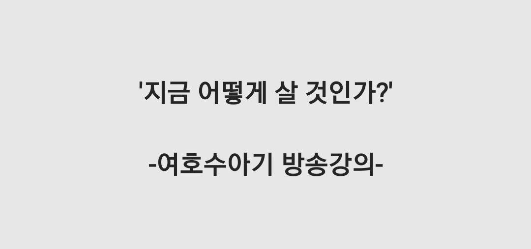 오늘날 저희에게 '지금 어떻게 살 것인가?'
