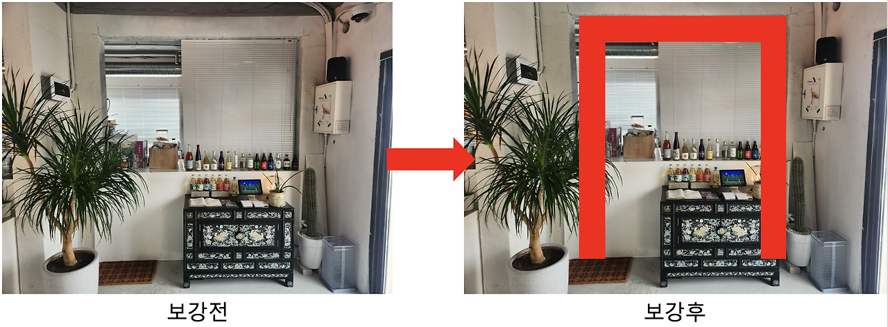 - 1층에서 옥외영업을 신고하려고 해서 위생과에서 시설검토를 나왔는데 평면도와 실제 건물구조가 일치하지 않아서 '보강'을 해야하는데...(중략)