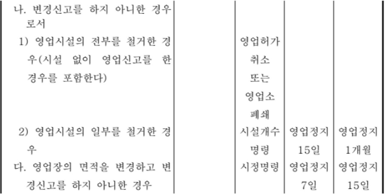 식품위생법 제37조(영업허가) --> 면적변경에 대해 신고사항 명시되어 있음