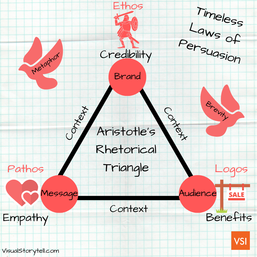 아리스토텔레스의 설득의 3요소, Ethos(신뢰), Pathos(감정), Logos(논리), 그는 Ethos(신뢰를) 가장 중요하다고 여겼다.