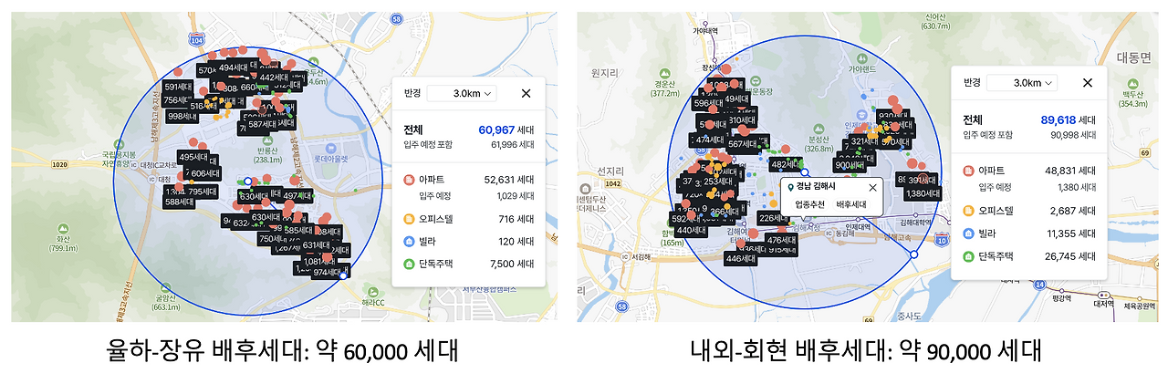 실제 주변 사는 세대가 전부 방문하지는 않겠지만 그래도 배후세대가 적은 것보단 많은 게 낫지 않나 싶어 찾다가 발견한 사이트다. 주변 상권을 대략적으로 파악하는 데 조금이나마 도움이 되지 않나 싶다. (개인적으로 사이트를 활용한 것 뿐이지 전혀 상관이 없다)
