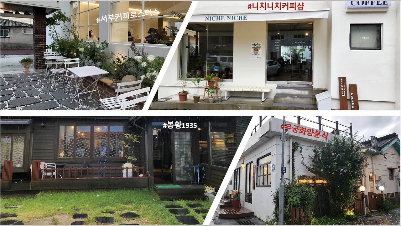 봉리단길에는 각자의 색깔이 돋보이는 카페 & 음식점들이 많다.